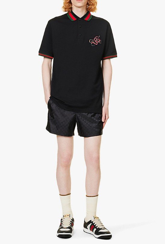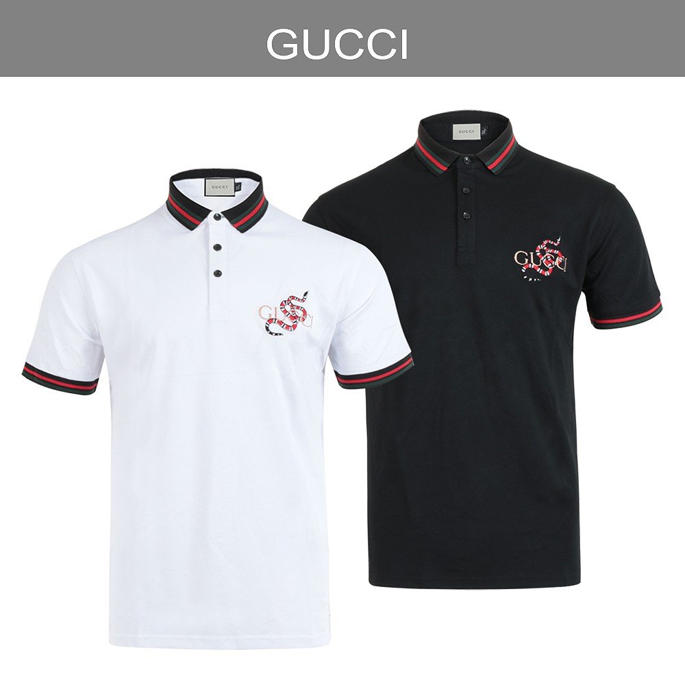 구찌 스네이크 자수 웹 PK 반팔 카라티