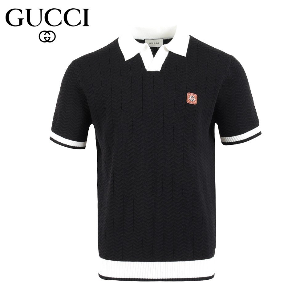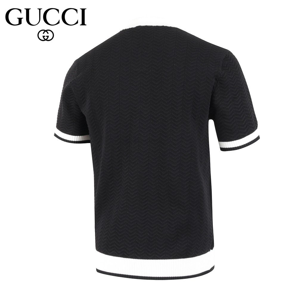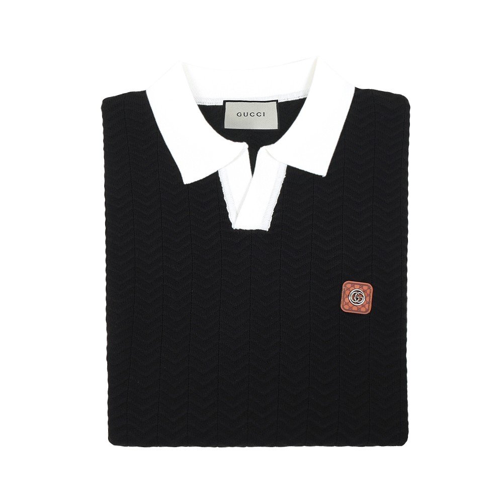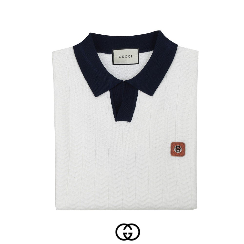구찌 스틸 로고 라이닝 반팔 카라 니트