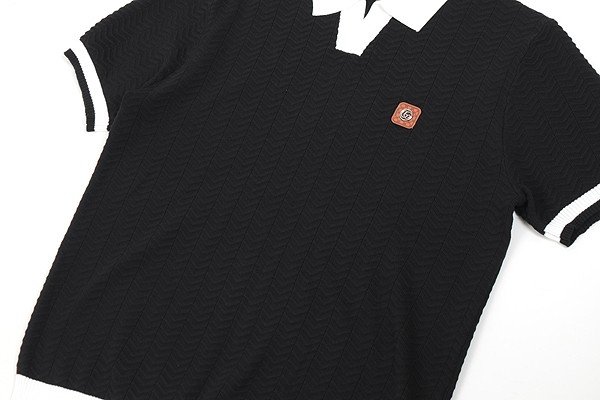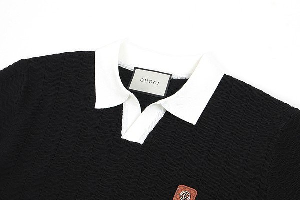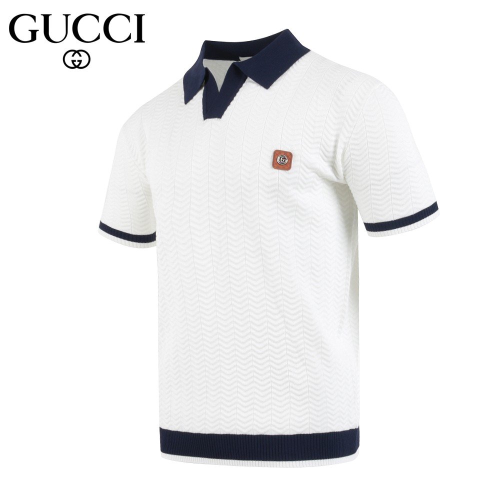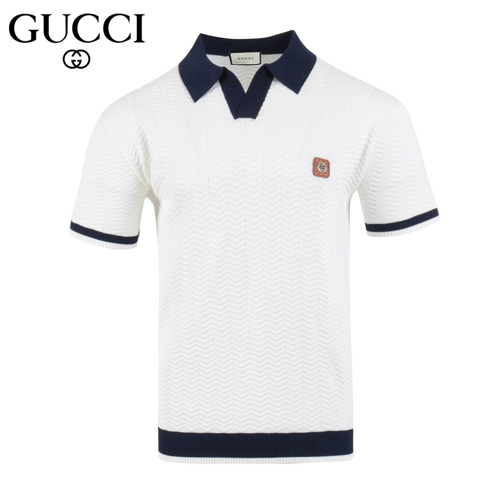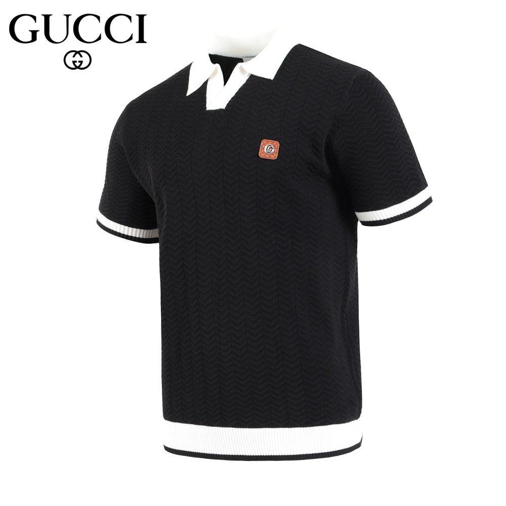 구찌 스틸 로고 라이닝 반팔 카라 니트