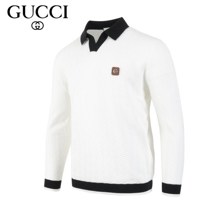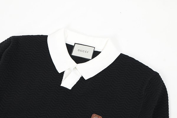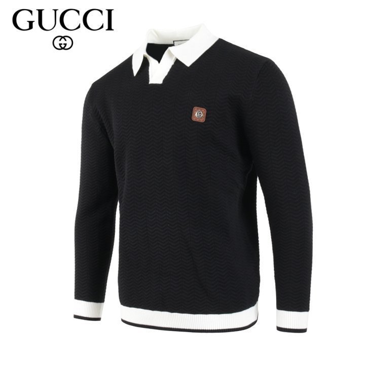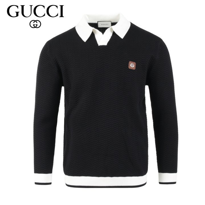 구찌 스틸 로고 배색 카라 롱 슬리브 니트