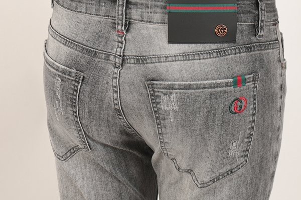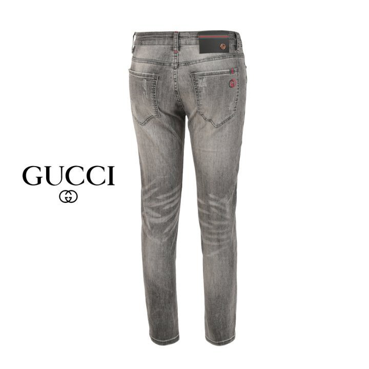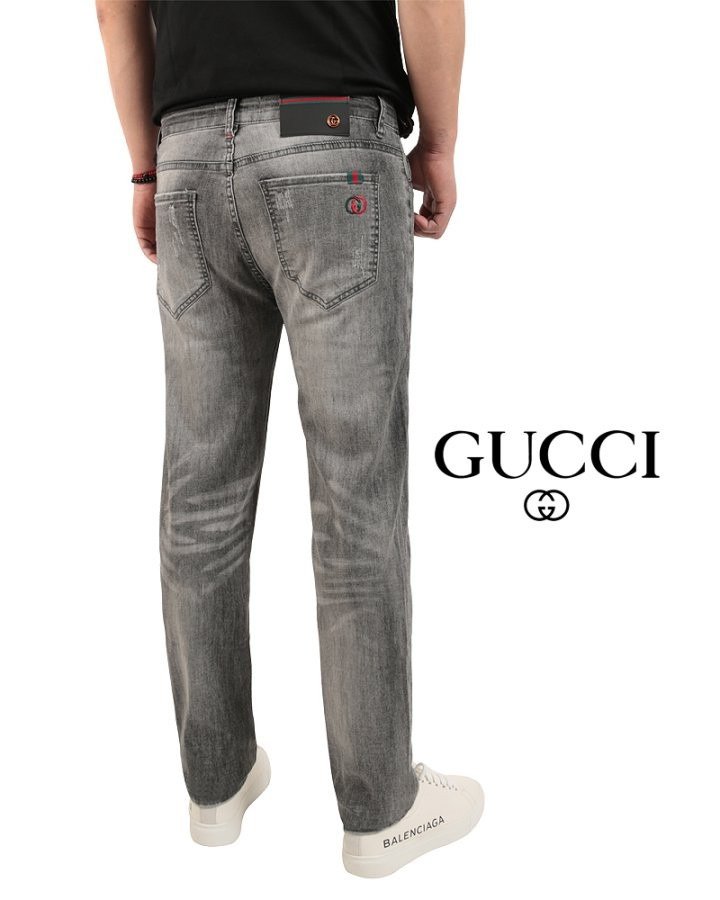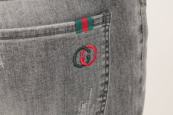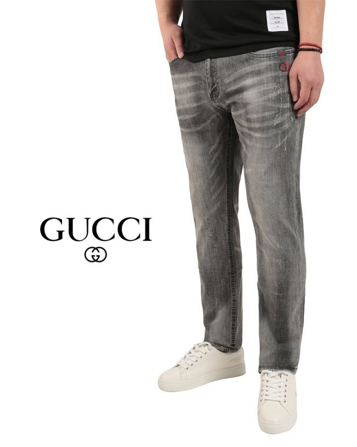 구찌 자수 로고 그레이 워싱 슬림진 청바지