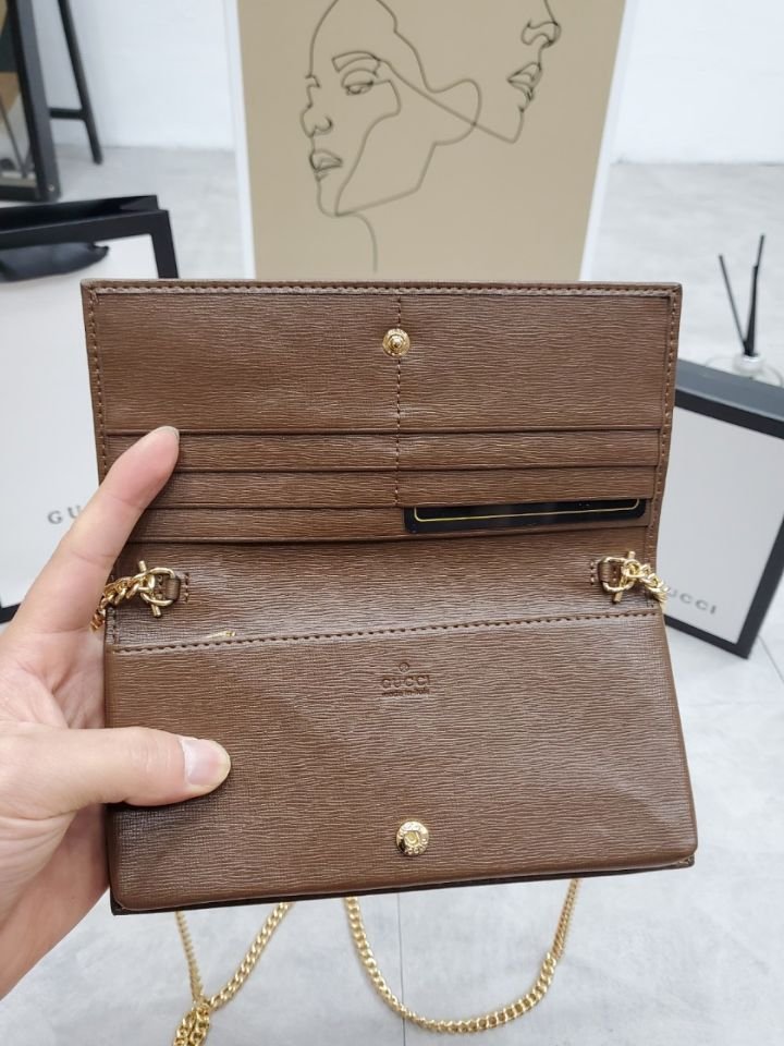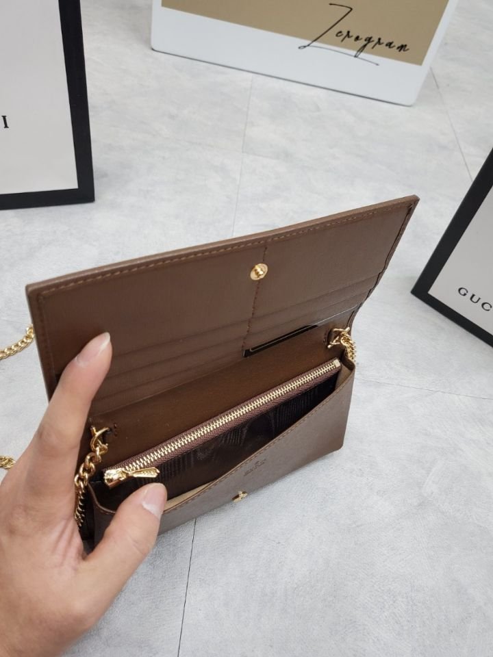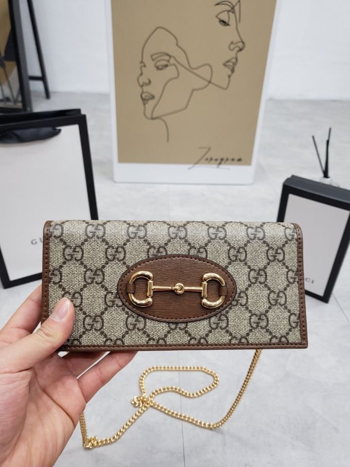 구찌 홀스빗 1955 체인 장지갑 브라운 색상: 브라운사이즈: 19 * 10 * 4구성: 본품, 더스트, 박스, 영수증, 쇼핑백※지갑, 숄더백, 크로스백 다양하게 사용가능(영수증, 쇼핑백은 재고가 있을시 드립니다)단가: 9.5