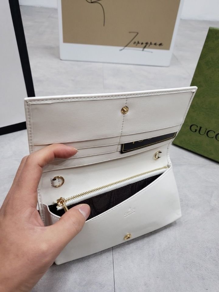 구찌 홀스빗 1955 체인 장지갑 화이트 색상: 화이트사이즈: 19 * 10 * 4구성: 본품, 더스트, 박스, 영수증, 쇼핑백※지갑, 숄더백, 크로스백 다양하게 사용가능(영수증, 쇼핑백은 재고가 있을시 드립니다)단가: 9.5