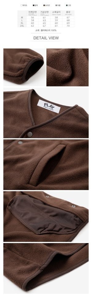 꼼데가르송 오버핏 후리스 가디건 색상: 블랙, 화이트, 그린,브라운, 차콜사이즈: M(95~100), L(105),XL(110), 2XL(115)※오버핏※폴리에스터※마지막 사진 상세사이즈 참고7.0