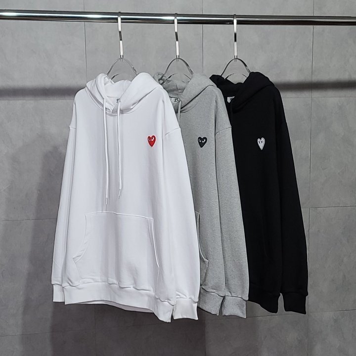 꼼데가르송 하트 와펜 베이직 후드티 사이즈: M, L, XL, 2XL색상: 블랙, 화이트, 베이지,핑크, 블루, 그레이패치 색상: 레드, 블랙, 화이트(선택 가능)※남여공용단가: 6.7