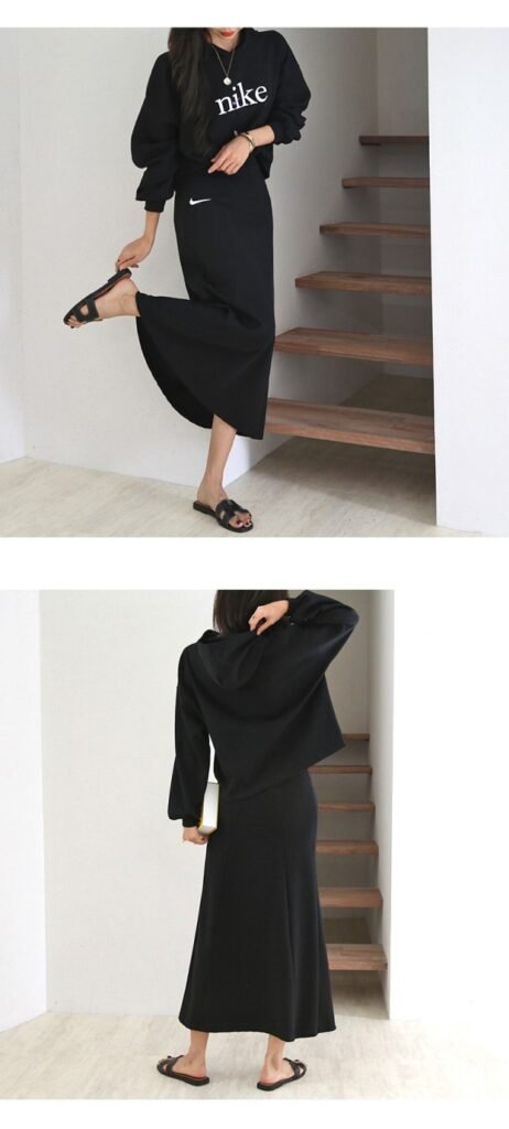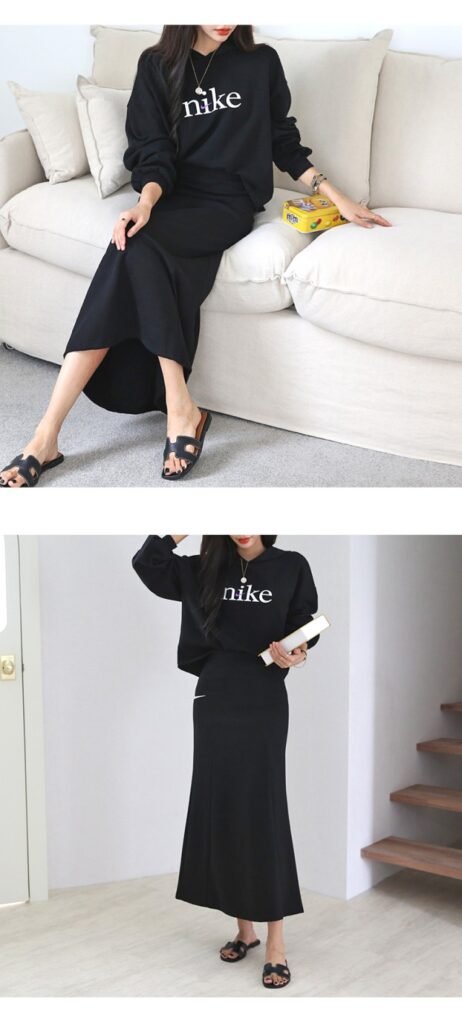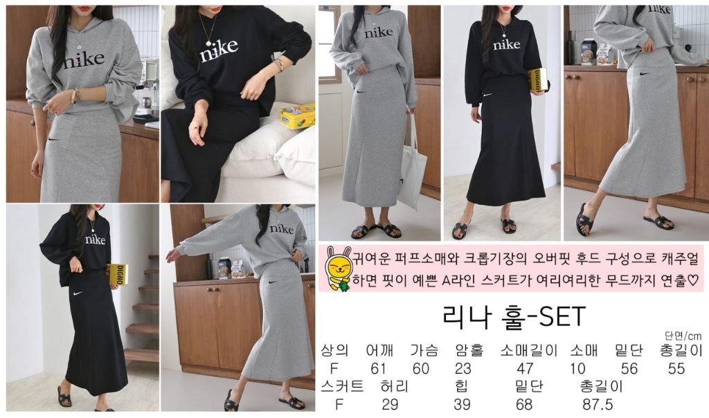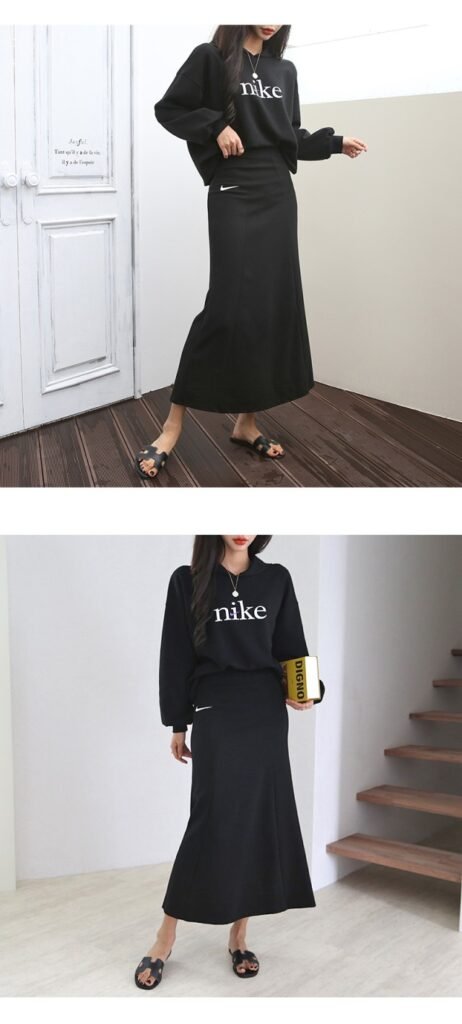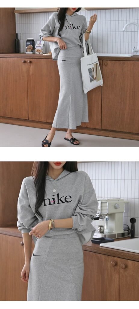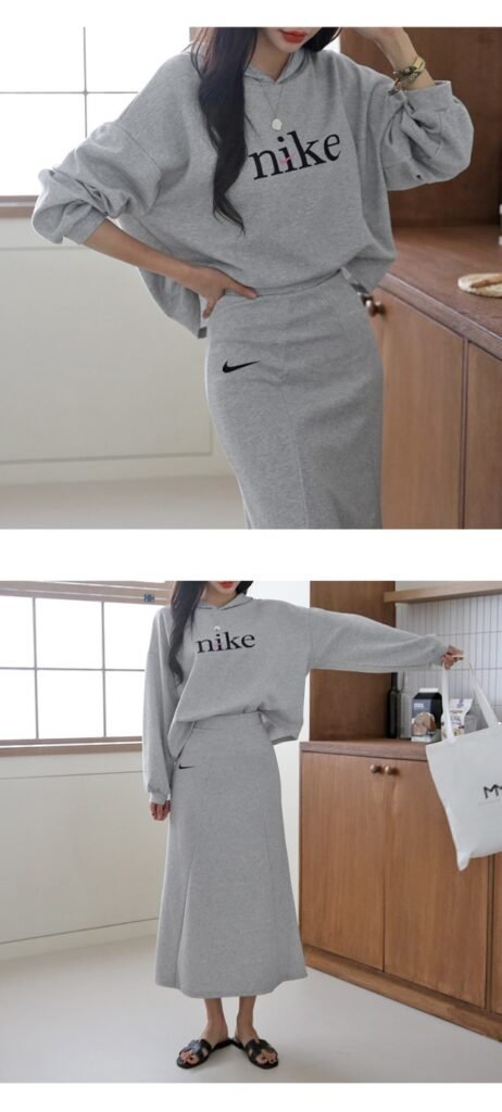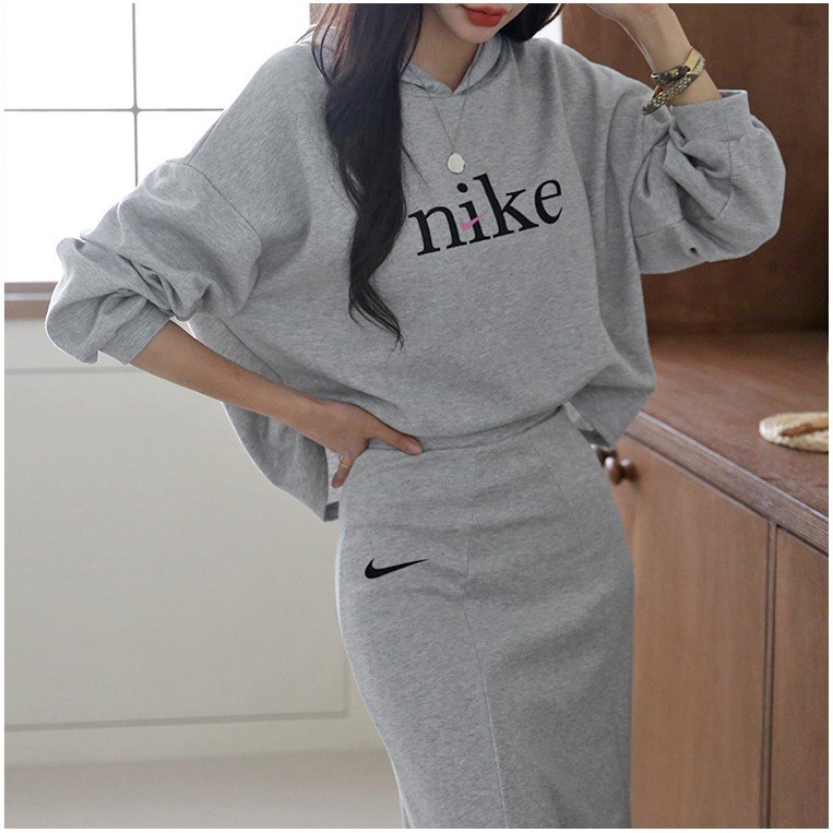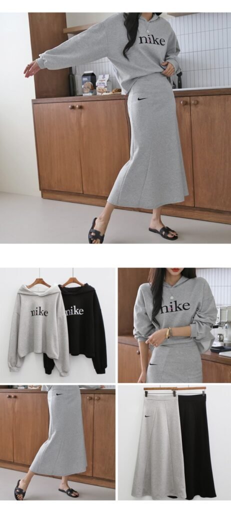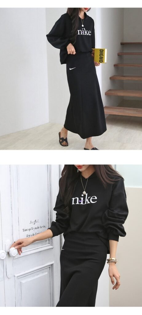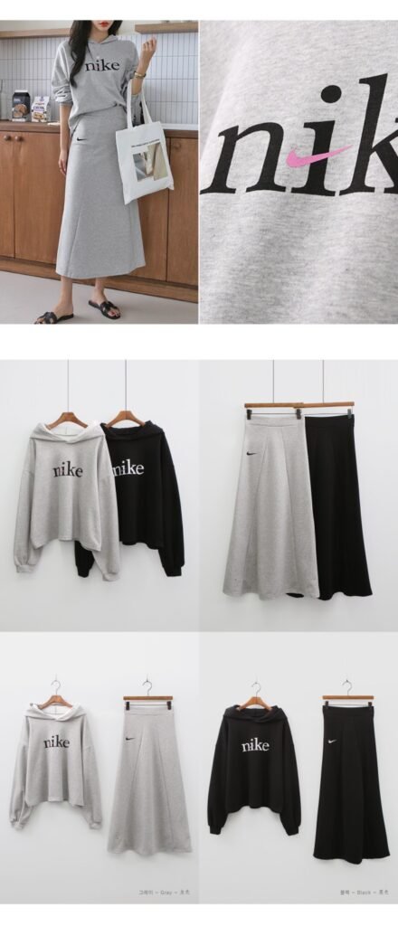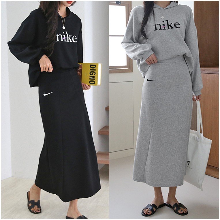 나이키 여성 크롭 절개핏 스커트 세트