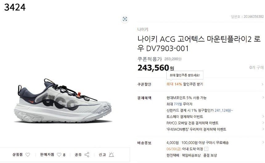 #나이키 [NIKE] 수입프리미엄급 나이키 ACG 고어텍스 마운틴플라이2 세일💢💢💢 #태그 #신발 #3424 ㆍ✍구성 ㅡ 본품. 브랜드 박스 풀구성ㆍ😍컬러 ㅡ 화이트ㆍ😍사이즈 ㅡ 37 (230 ~ 235 mm)41 (255 ~ 260 mm)✔14.0