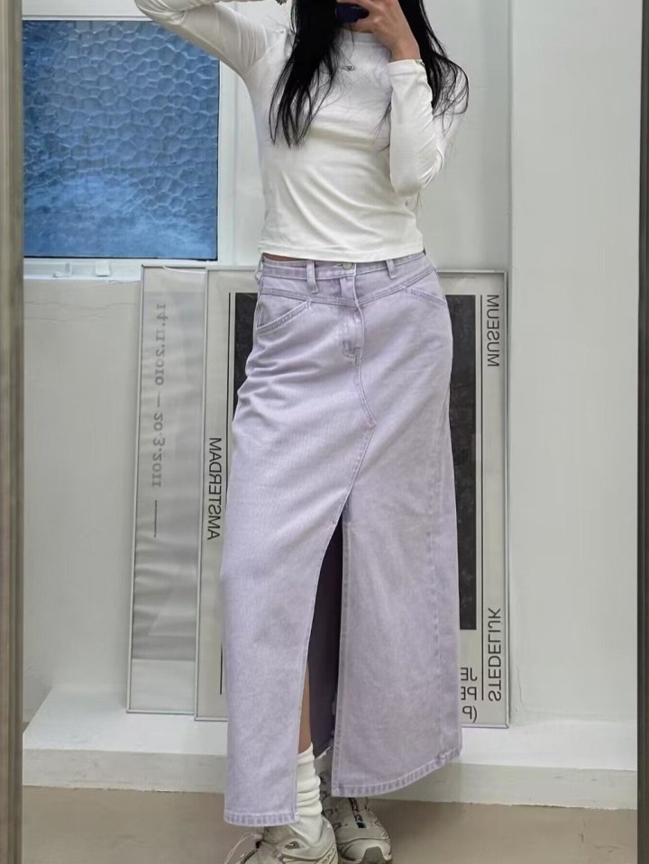 디올 라일락 데님 스커트 (치마)