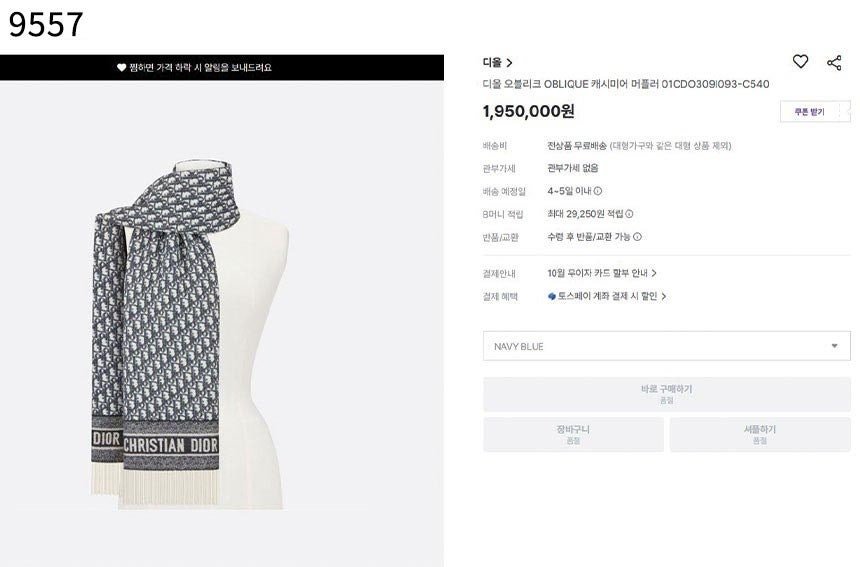 #디올 [DIOR] 수입고급 디올 오블리크 캐시미어 테슬 머플러 신상입고💢 #머플러 #9557 😍컬러 ㅡ 블랙ㆍ😎사이즈 ㅡ 60 X 196 (미세오차허용)ㆍ✍소재 ㅡ 울혼방7.5해외배송 5.0 (7~10일 소요, 해외배송은 10만 이상무배 드립니다.)