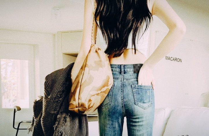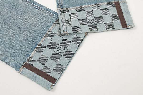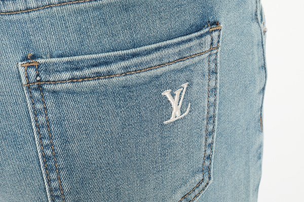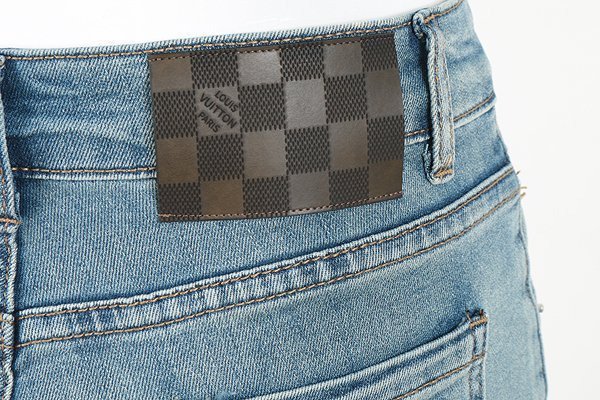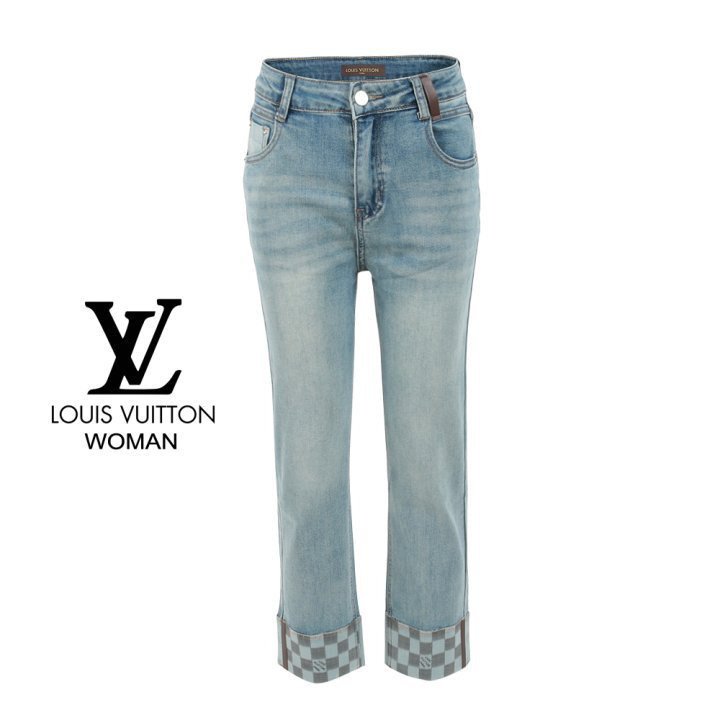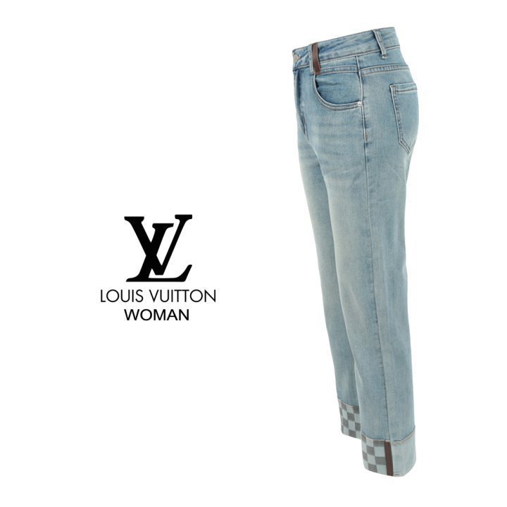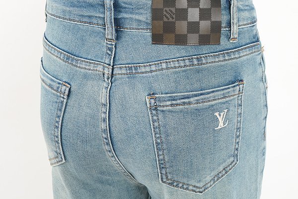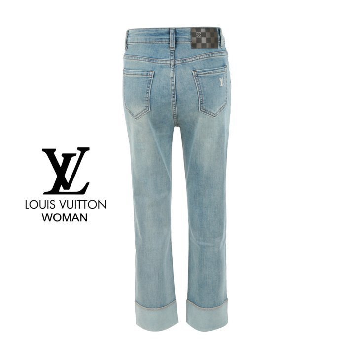 루이비통 여성 다미 가죽 패치 자수 로고 워싱진 청바지