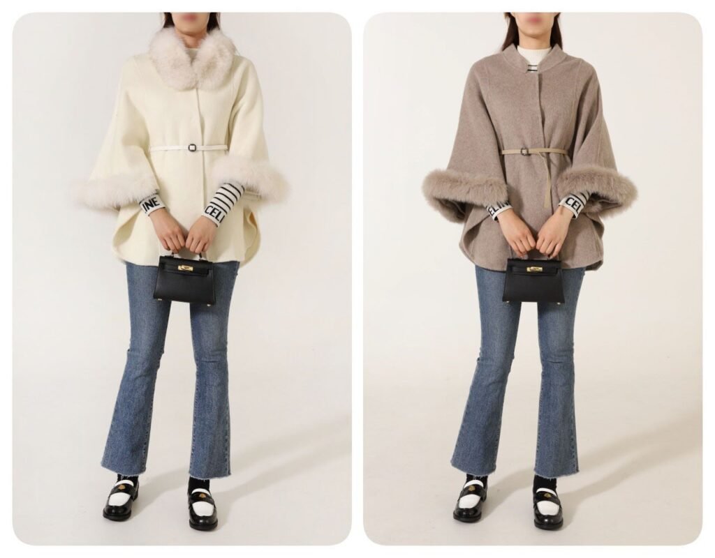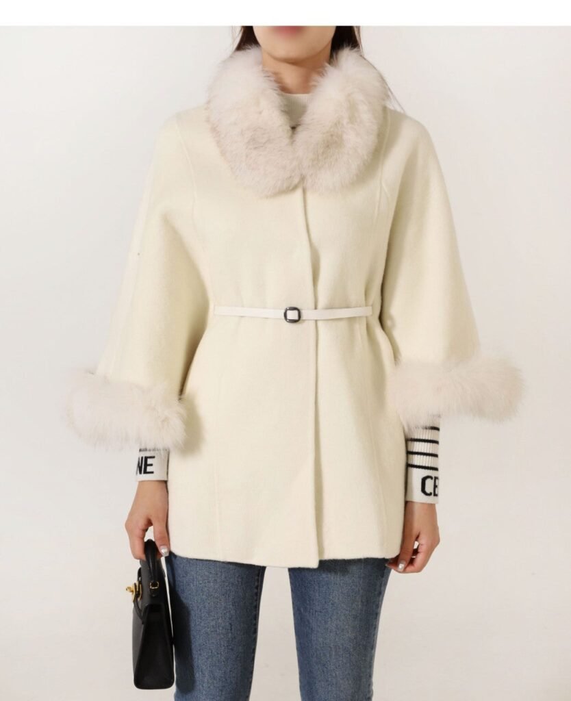#막스마라 [ MAX ] 수입 폭스카라 울 캐시미어 케이프코트 입고💢 #여성상의 #자켓 ㆍcolor ㅡ 화이트, 모카ㆍsize ㅡ 55. 66. 77ㆍ폭스 퍼** 모델 169, 50kg, 55 착용 **✔32.5 Tags: 코트