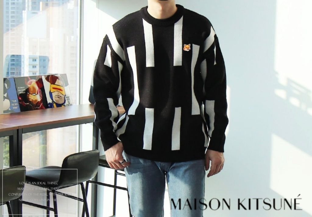 메종키츠네 스트라이프 라운드 니트 색상: 차콜, 블랙, 베이지사이즈: L(95~100), XL(100~105),2XL(110~115), 3XL(115~120),4XL(120~125), 5XL(125~130)※마지막 사진 상세사이즈 참고9.0