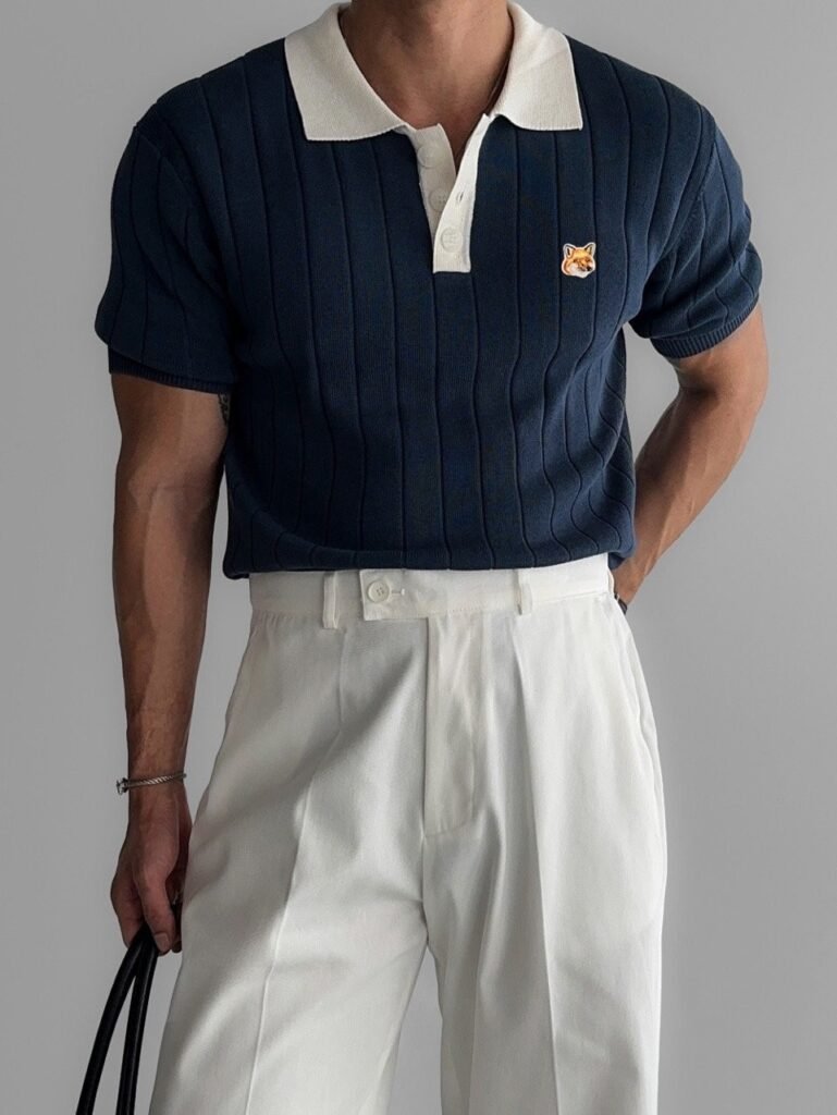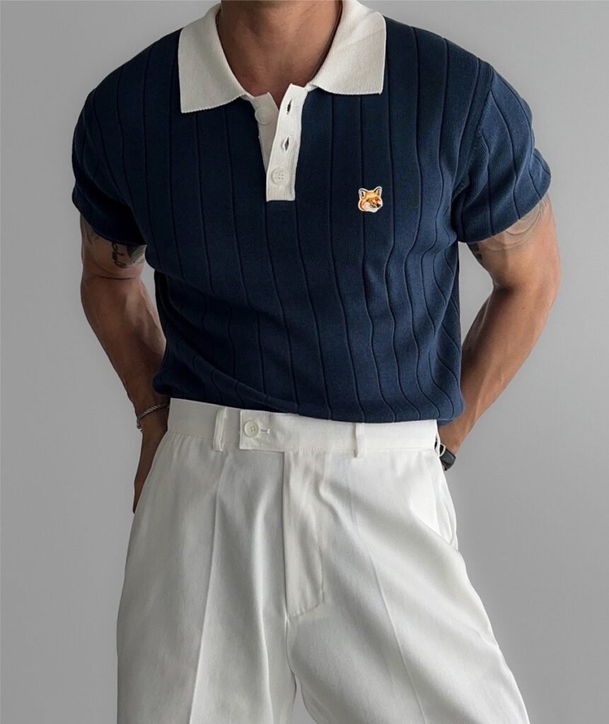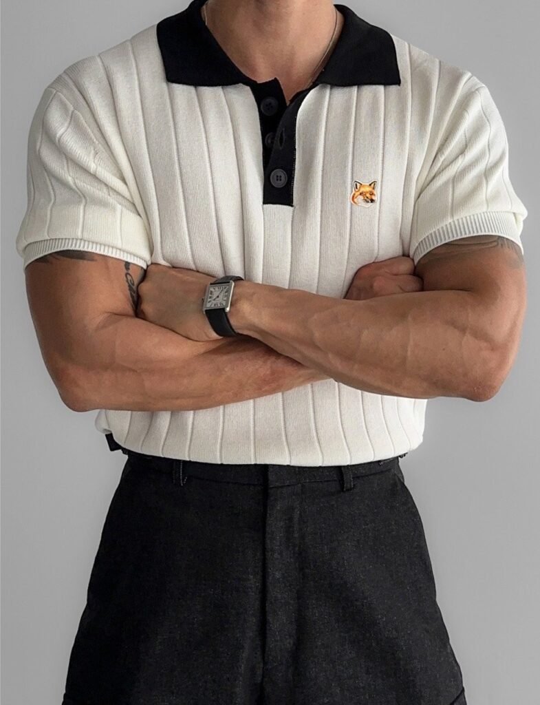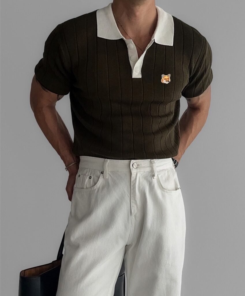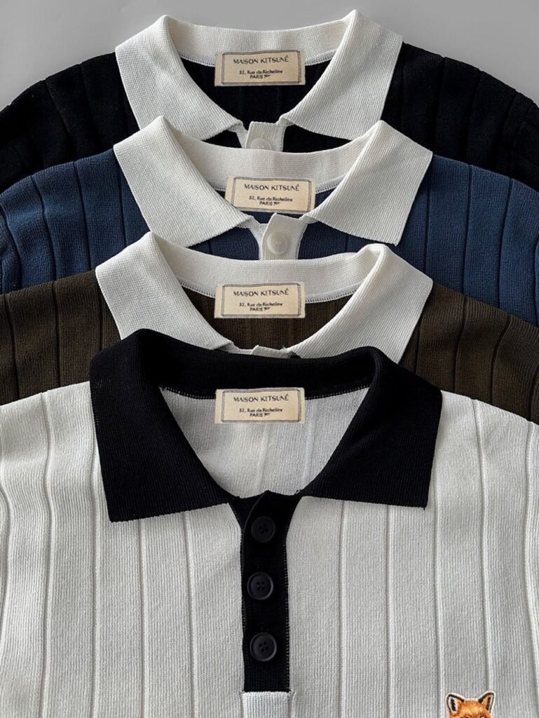 You are currently viewing 메종키츠네 폭스헤드 클레식 오픈 카라 반팔 니트