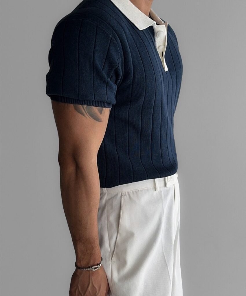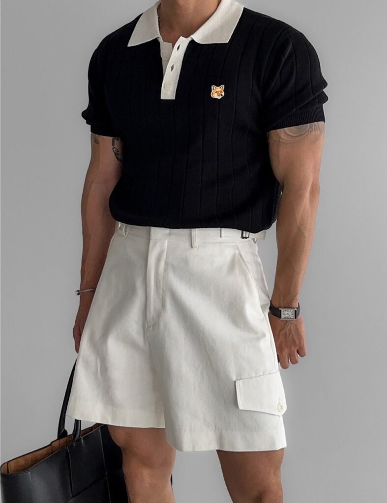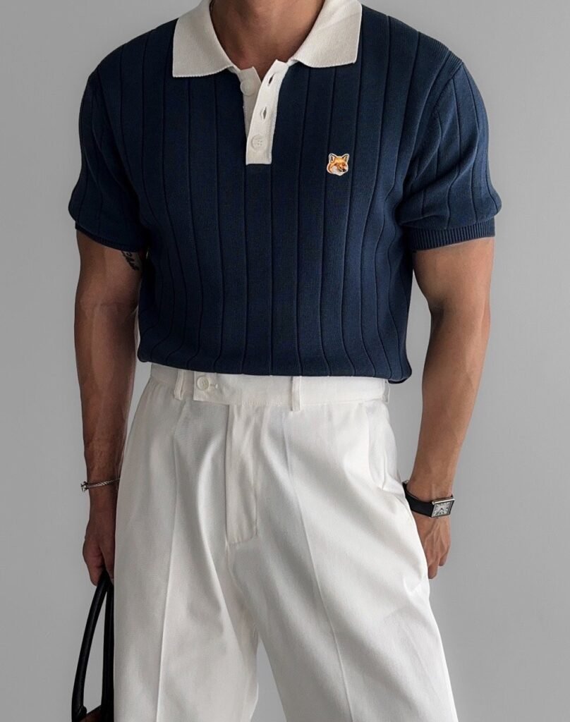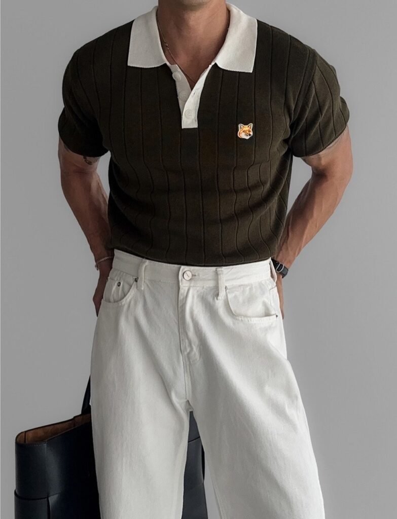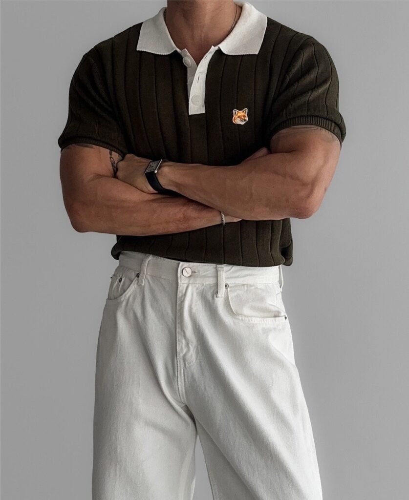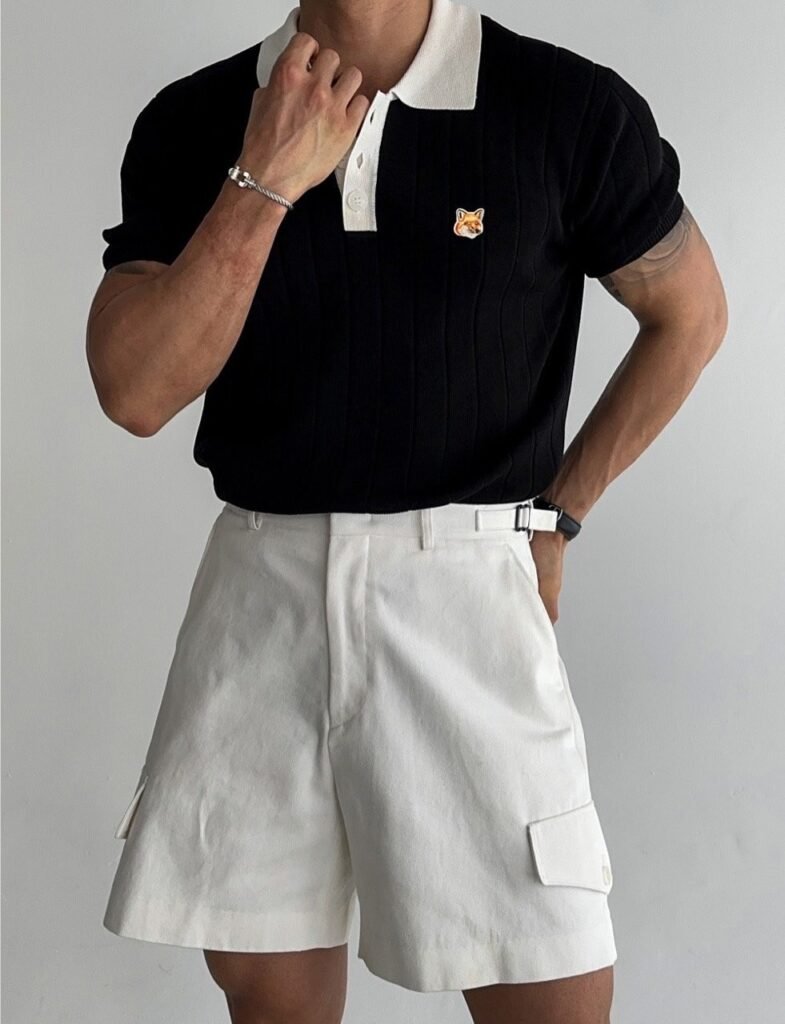 You are currently viewing 메종키츠네 폭스헤드 클레식 오픈 카라 반팔 니트