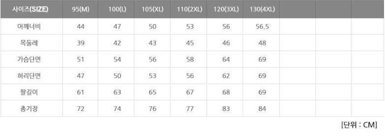 사이즈: M(95), L(100), XL(105),
