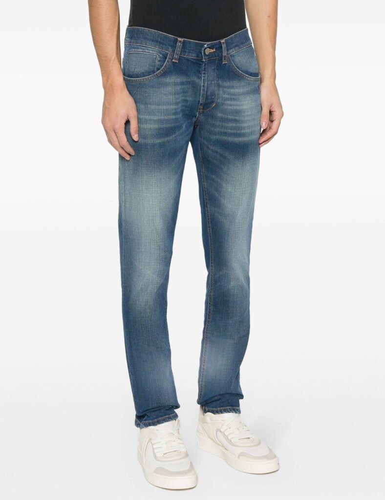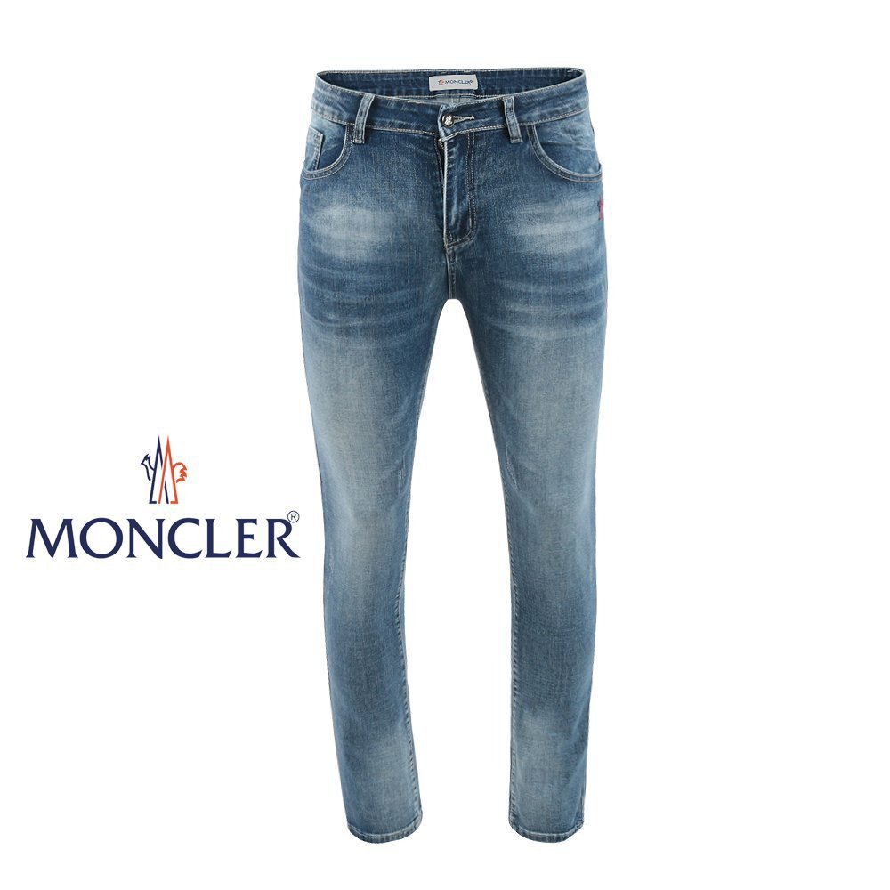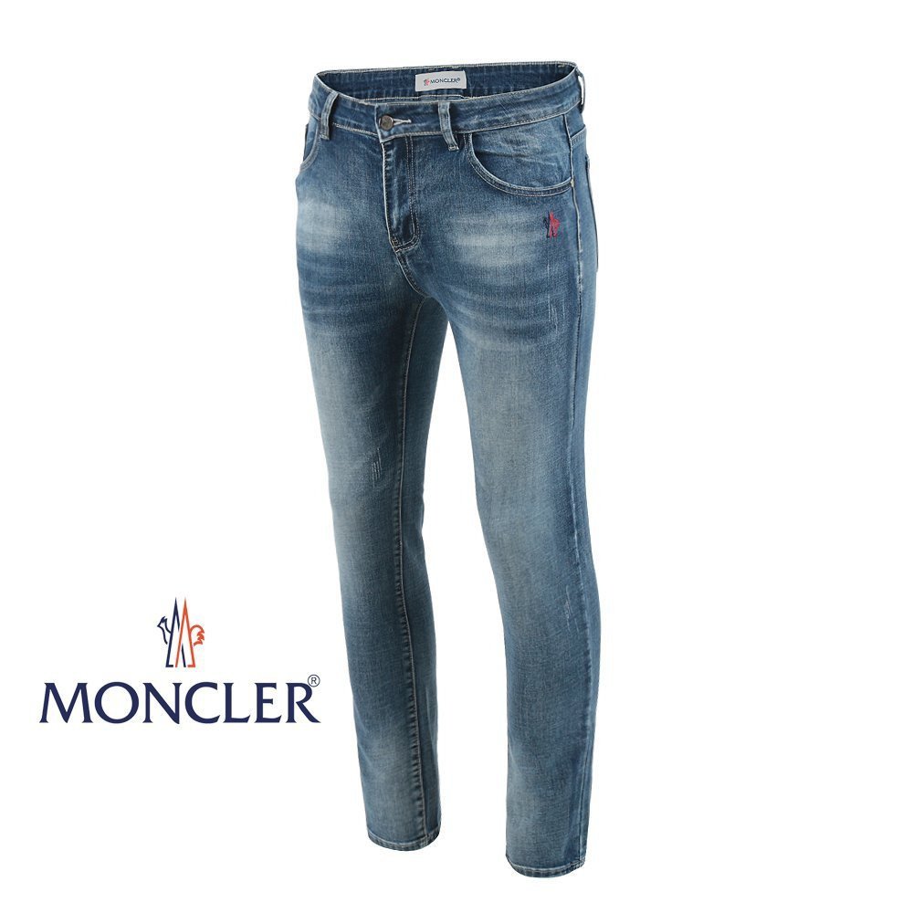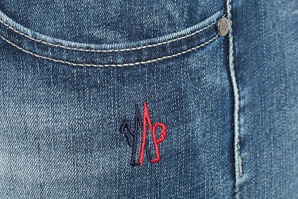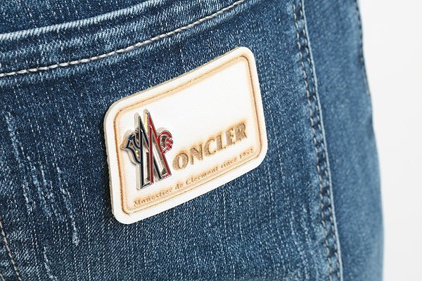 몽클레어 화이트 노블 스틸 패치 워싱 슬림진 청바지