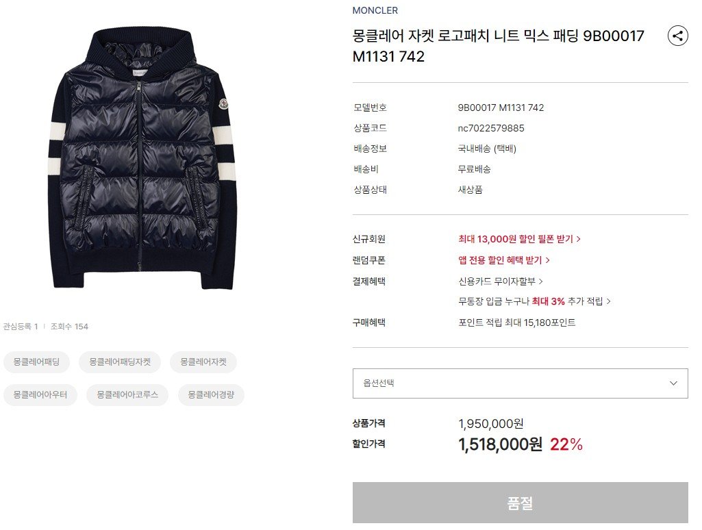 #몽클레어 [ Mc.몽 ] 수입 로고 패치 니트 패딩자켓 입고💢