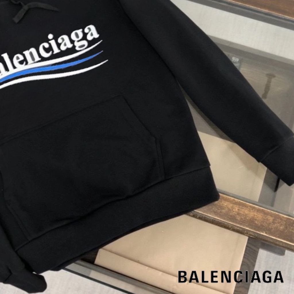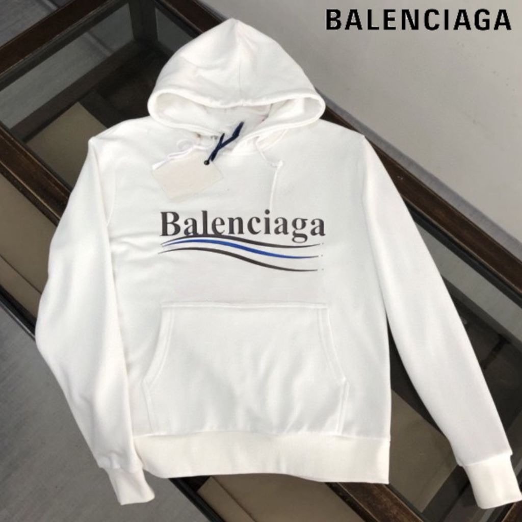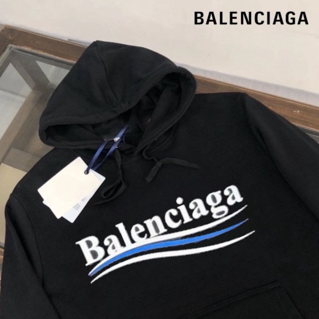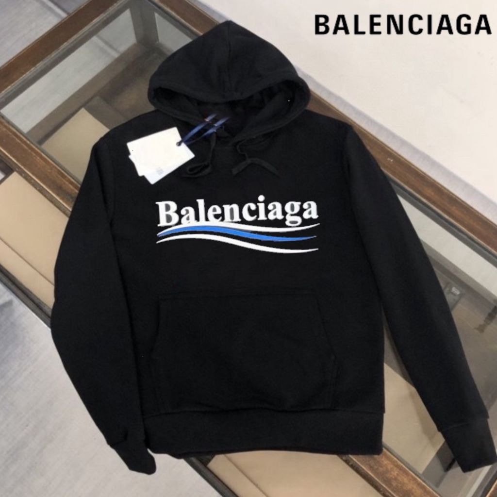 발렌시아가 블루 웨이브로고 후드티