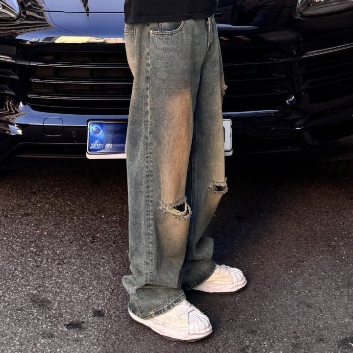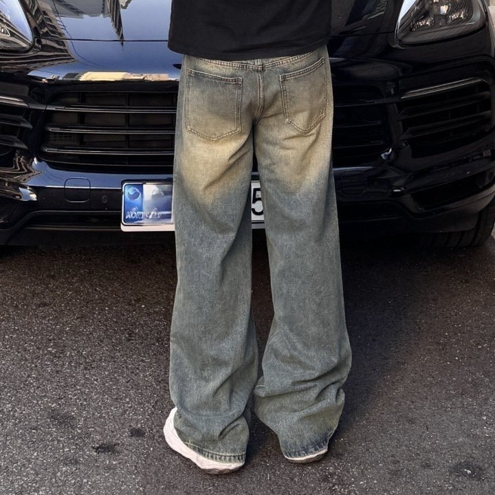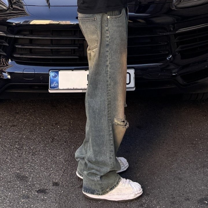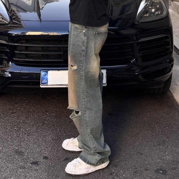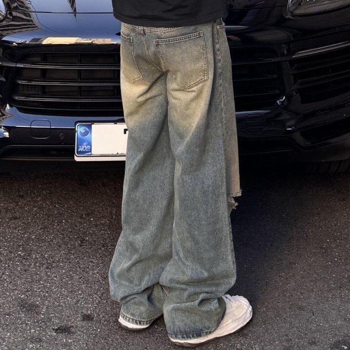 발렌시아가 컷팅 워싱 와이드 데님 청바지