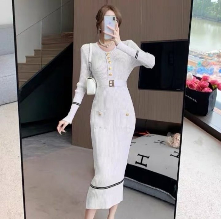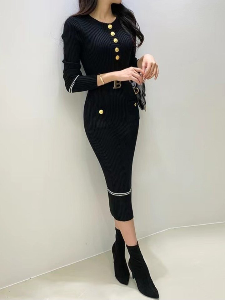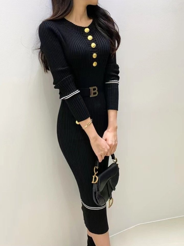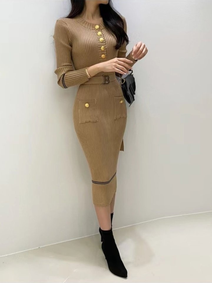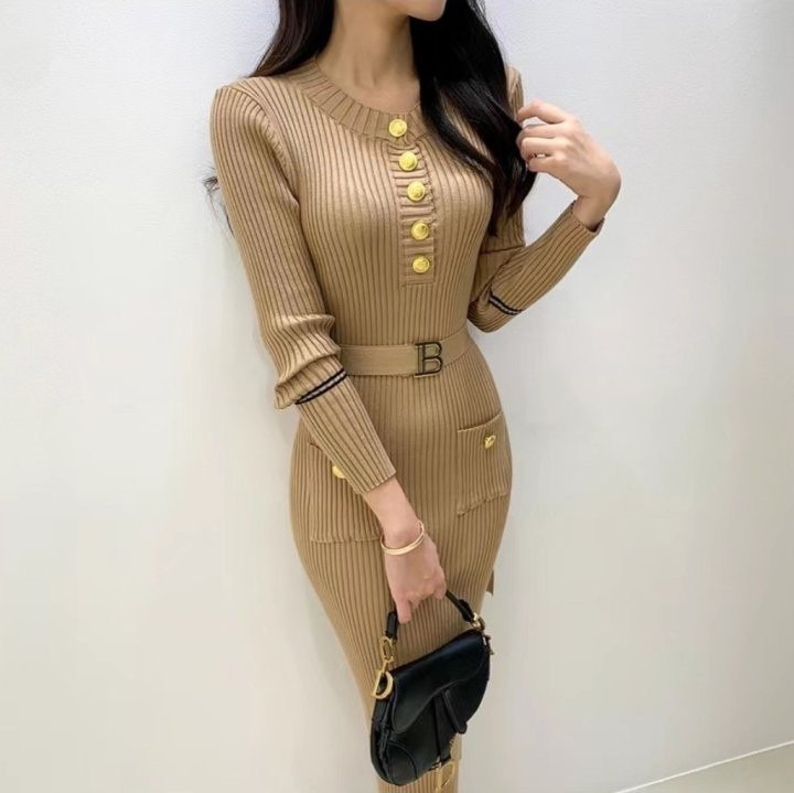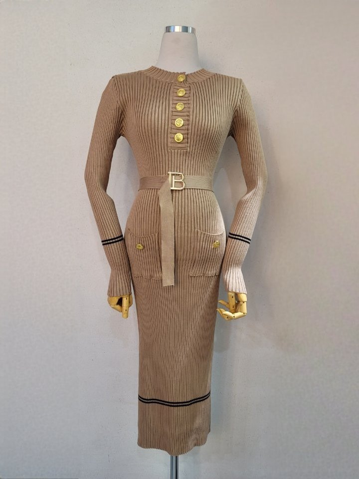 발망 B 벨트 골지 원피스