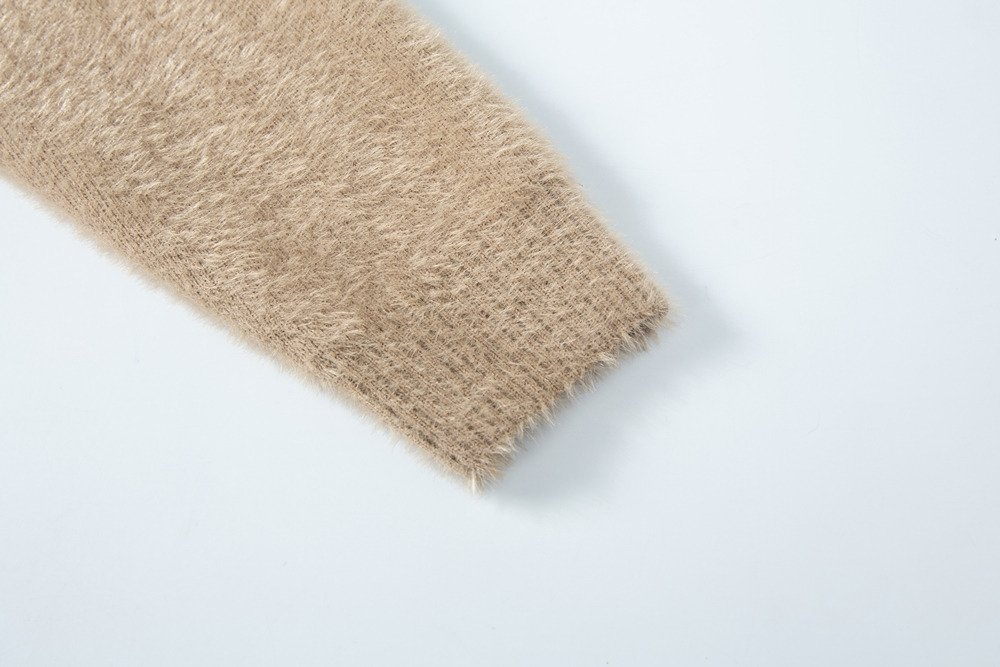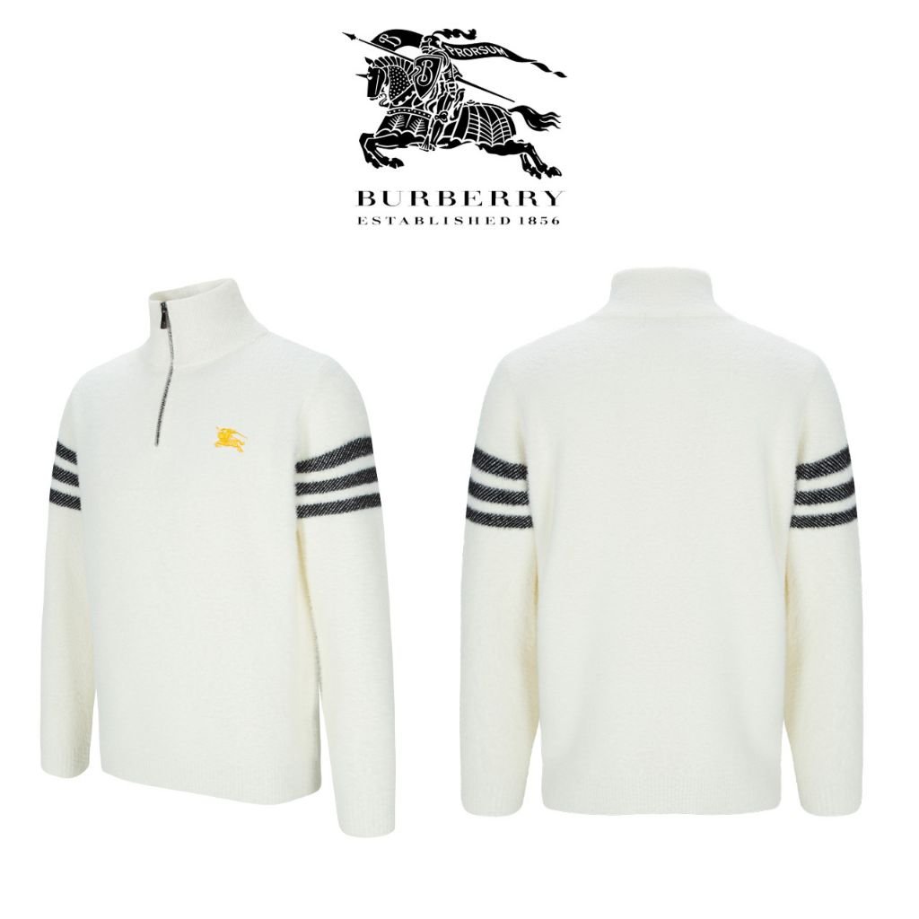 버버리 골드 버킷 부클 모헤어 반집업 니트