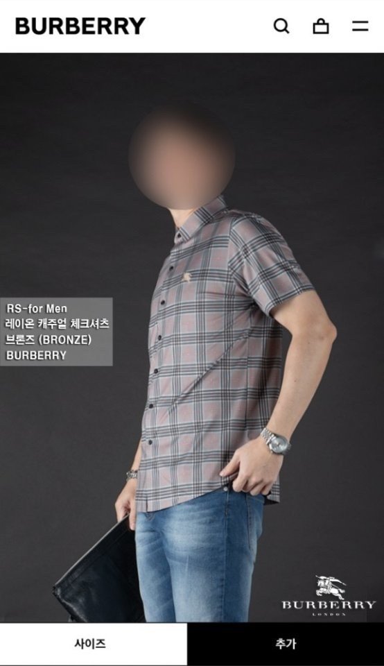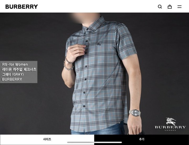 버버리 레이온 캐주얼 체크 반팔 셔츠