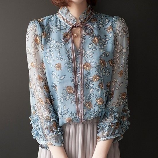 샤넬 여성 소매 프릴 블라우스