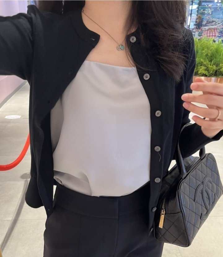 샤넬의 시그니처 다이아몬드 퀼팅 디테일의 블랙 캐비어 가