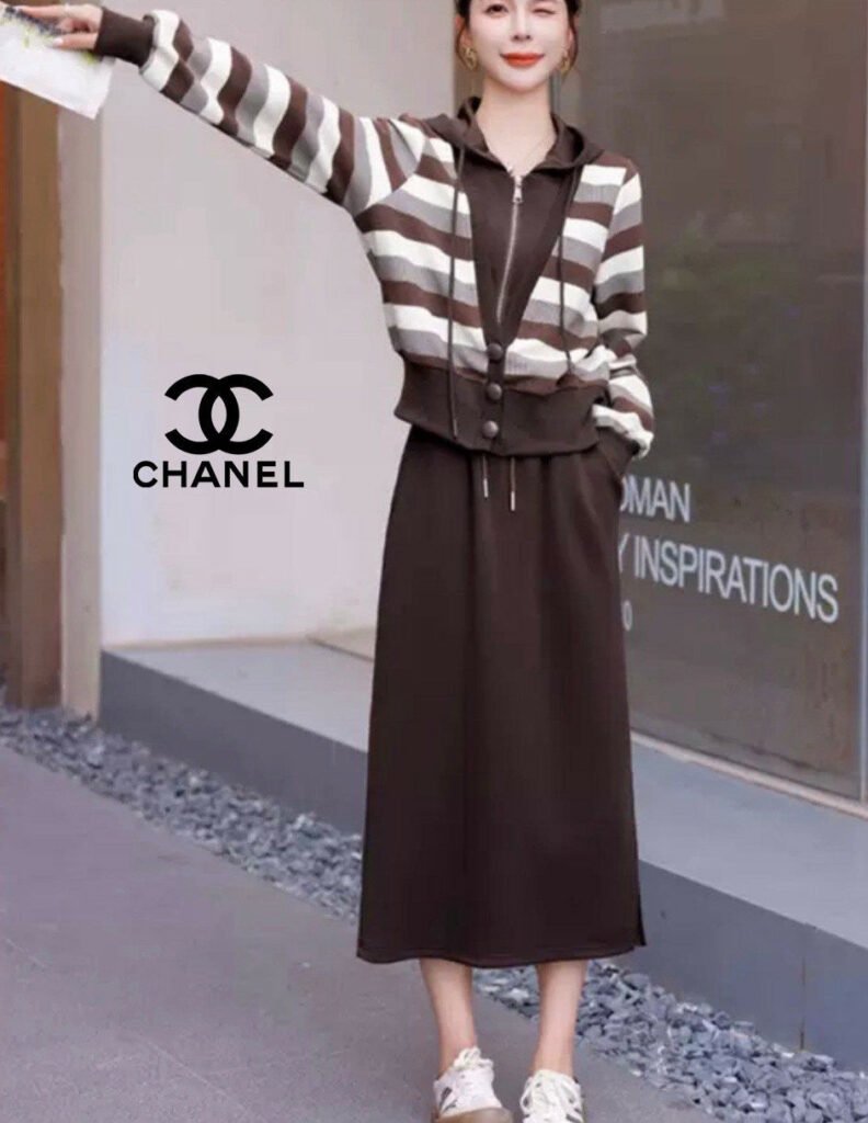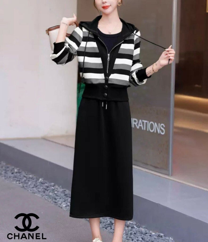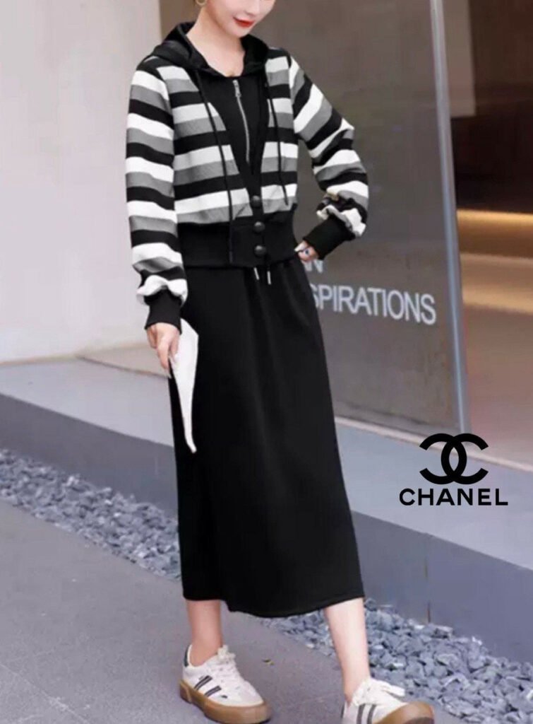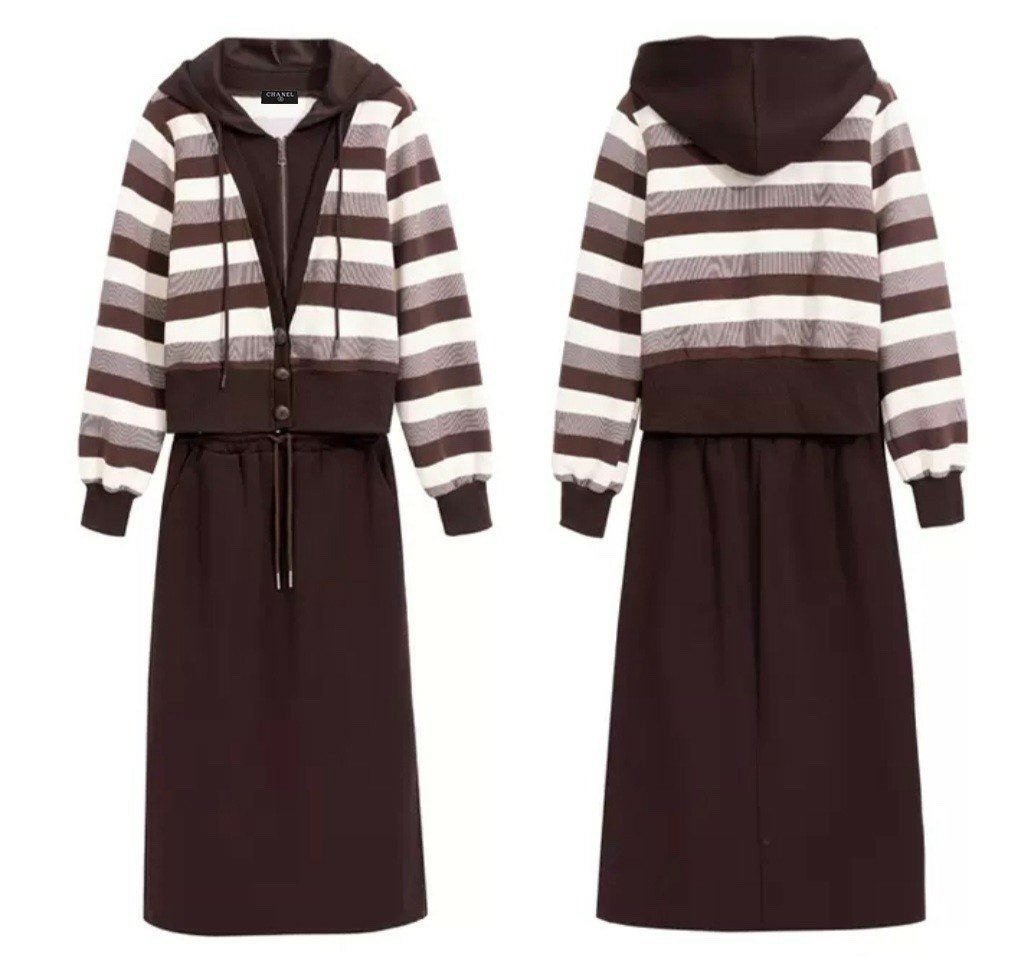샤넬 후드 가디건 레이어드 반집업 니트 원피스