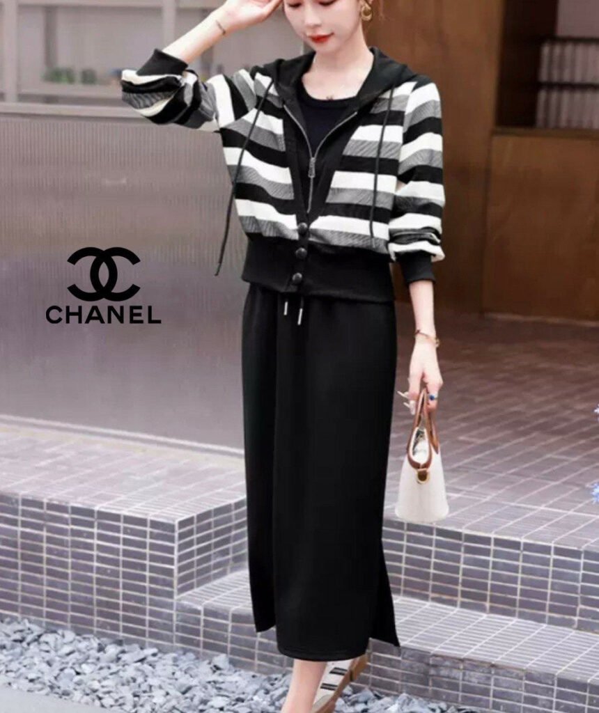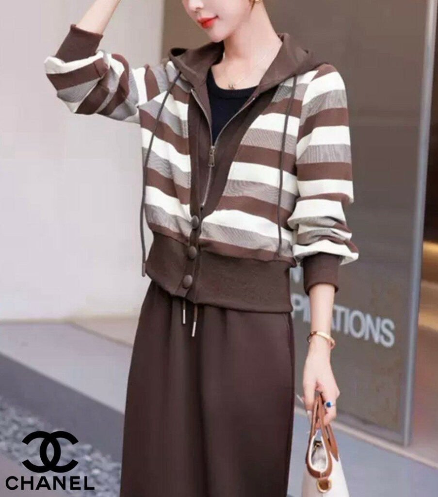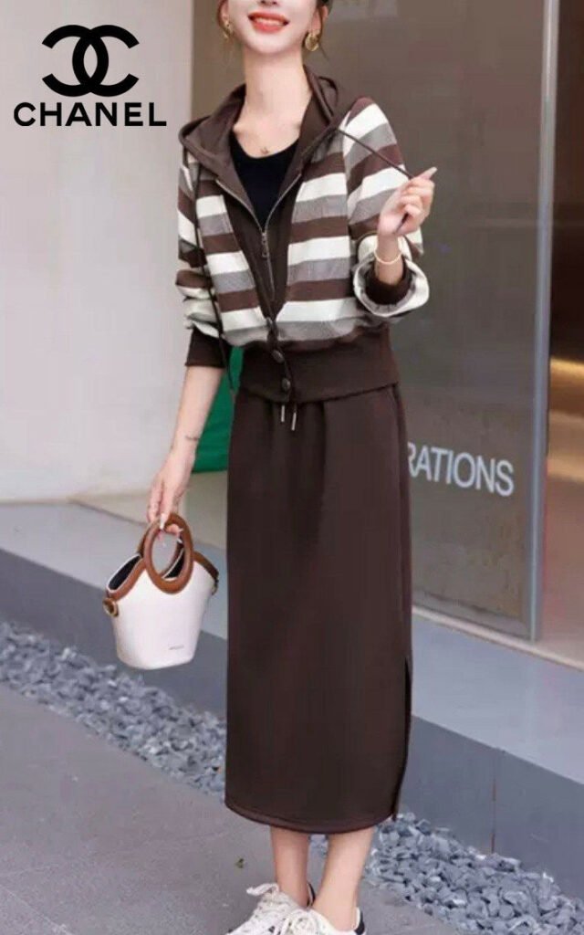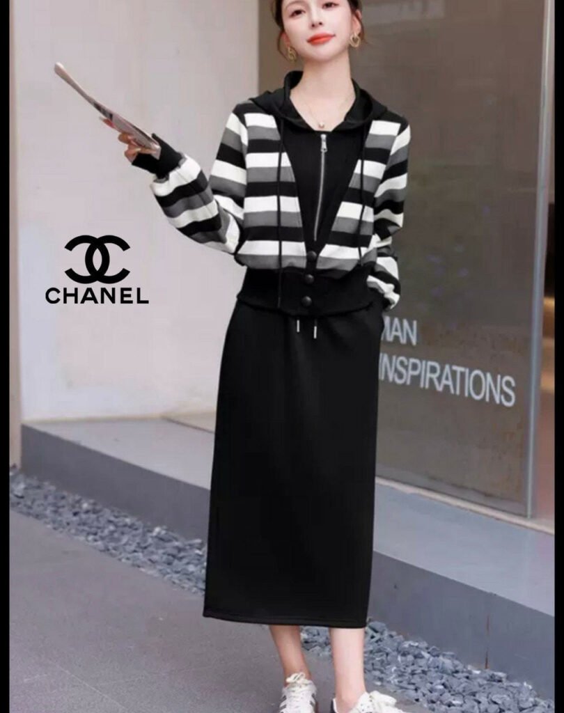 샤넬 후드 가디건 레이어드 반집업 니트 원피스