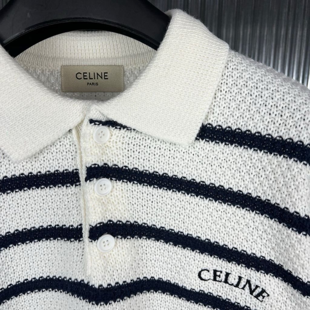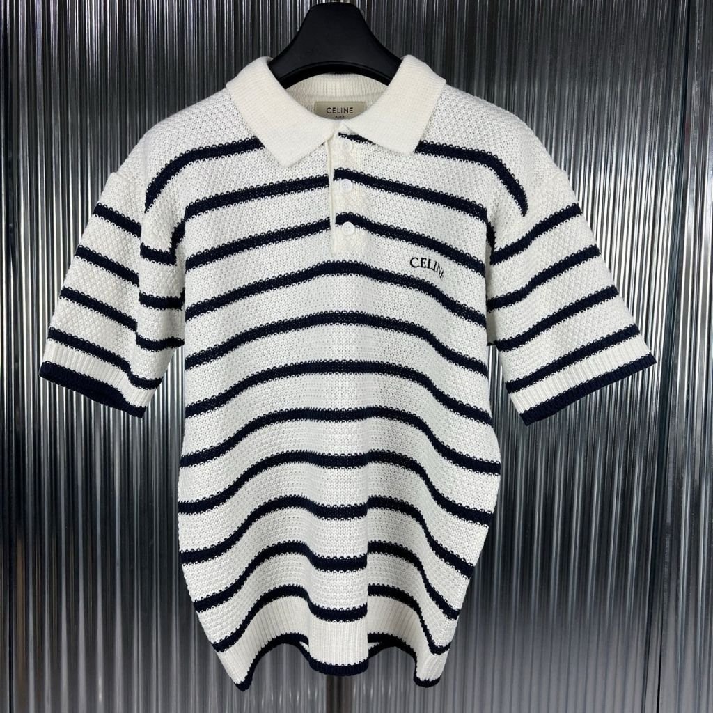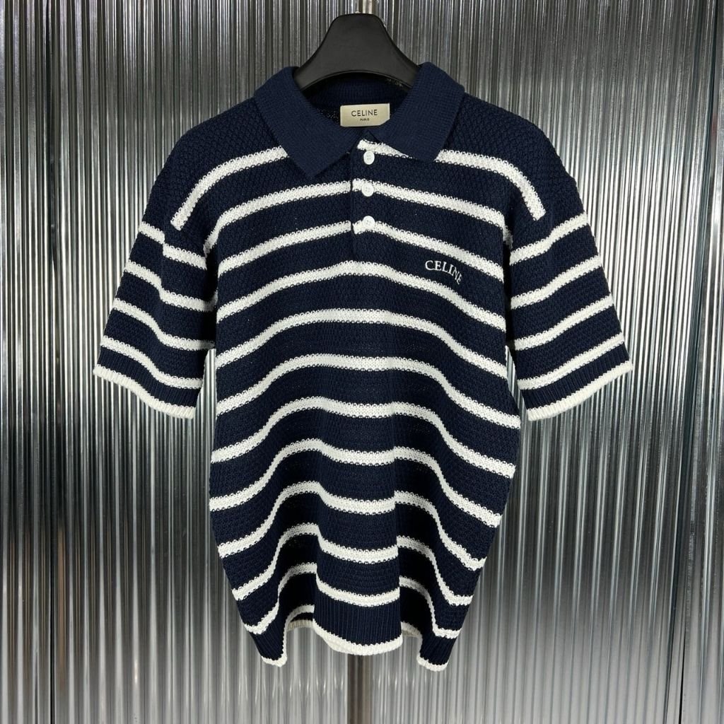 셀린느 스트라이프 카라 반팔 니트