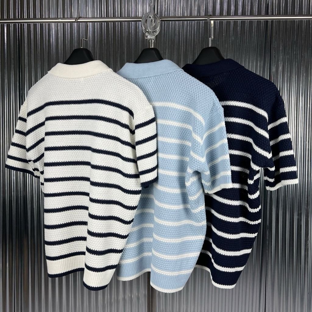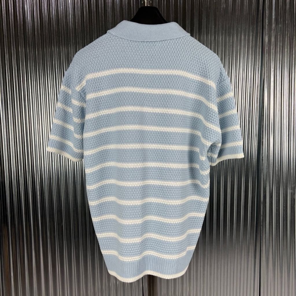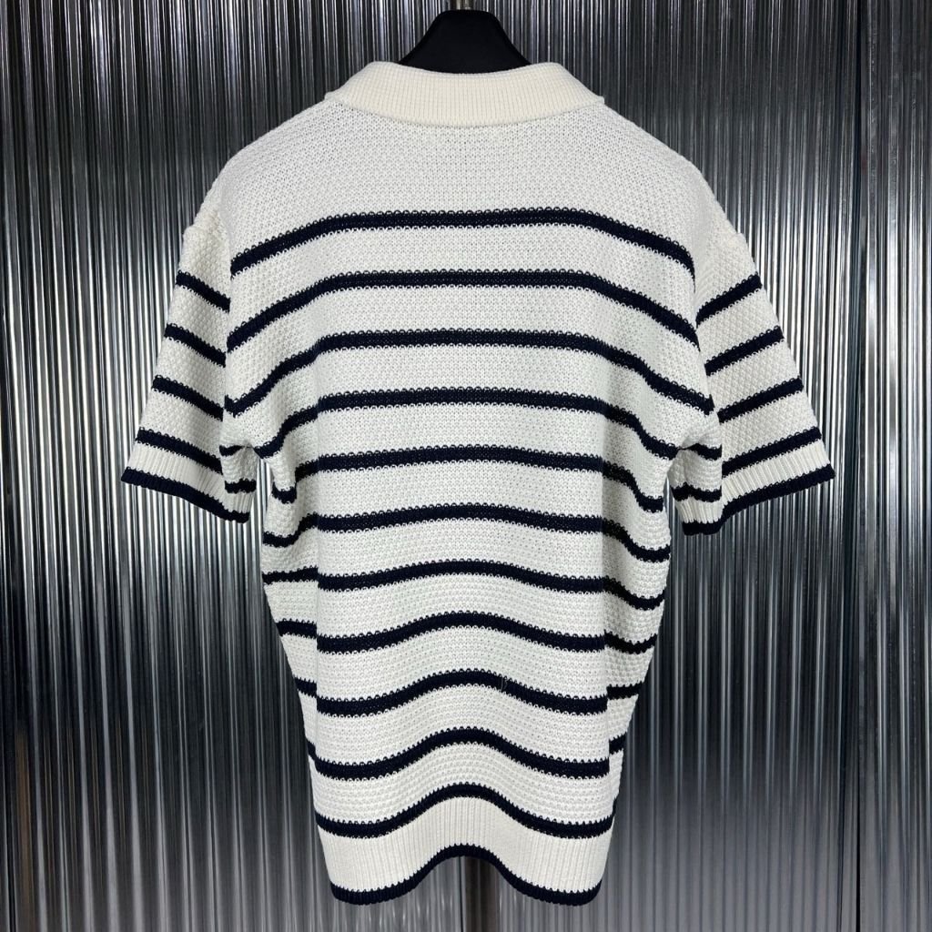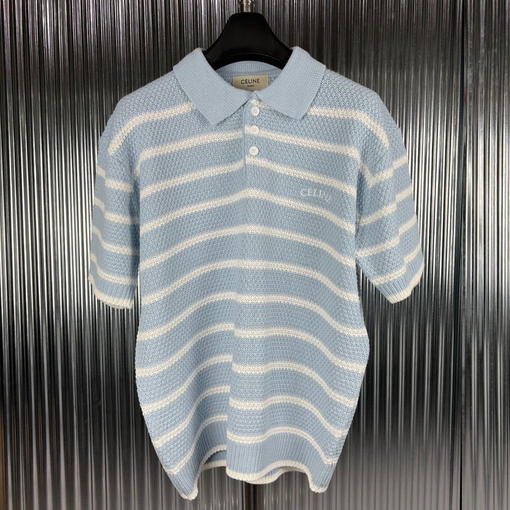 셀린느 스트라이프 카라 반팔 니트