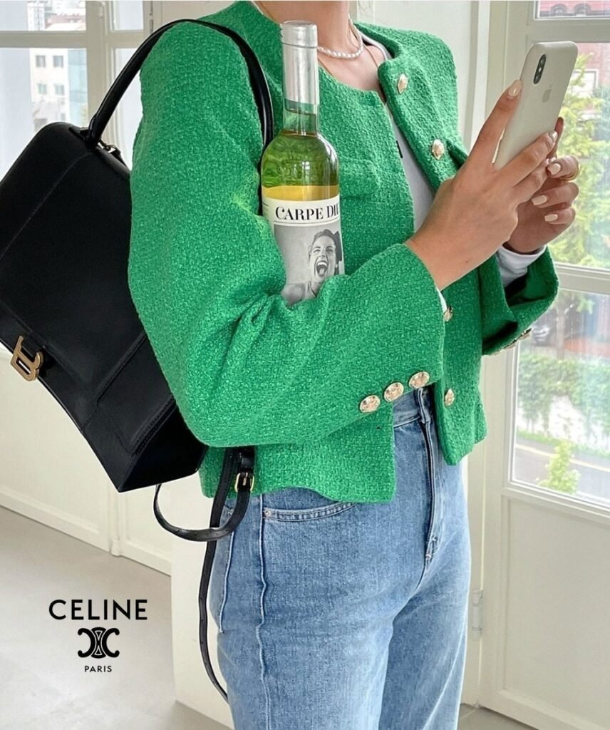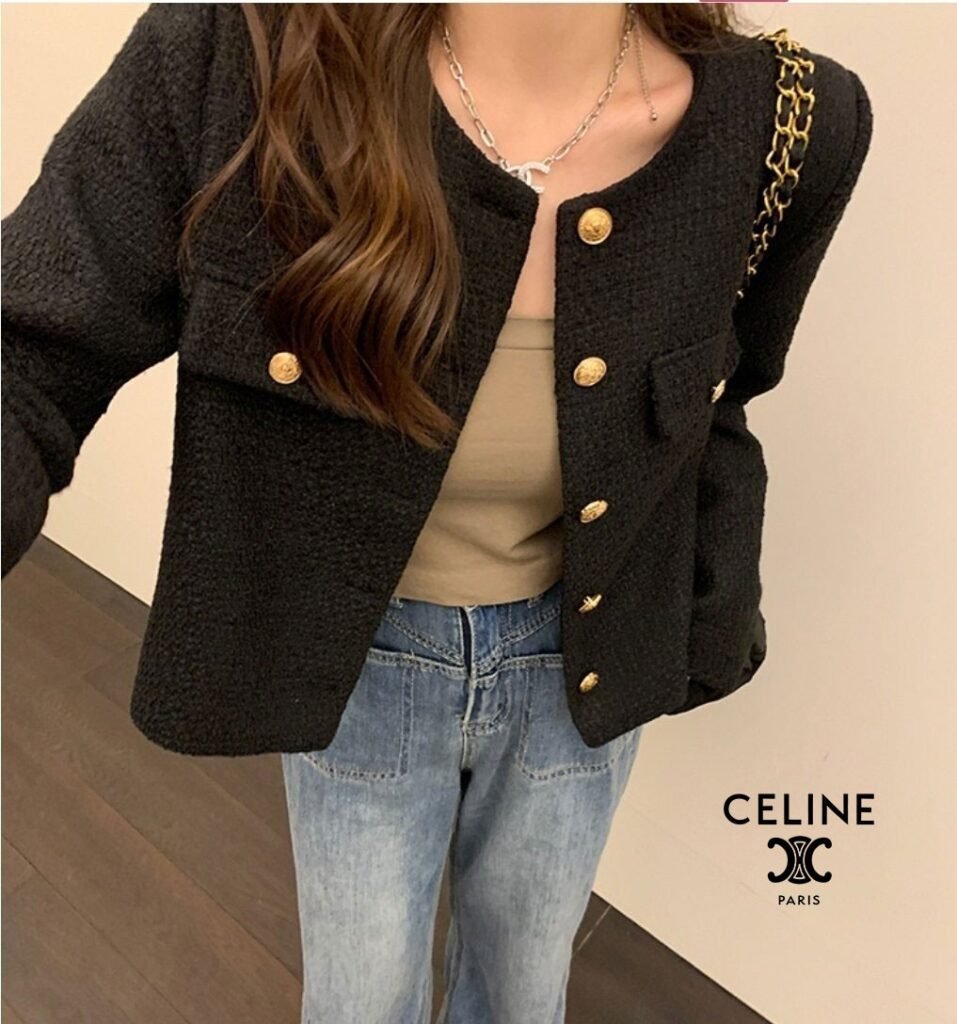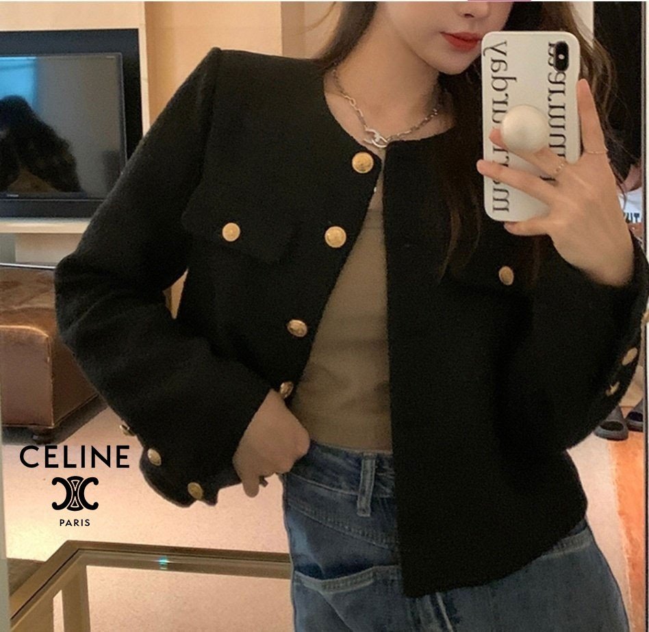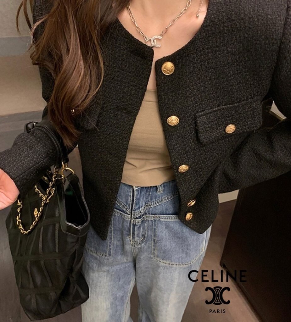 셀린느 여성 골드 트위드 자켓