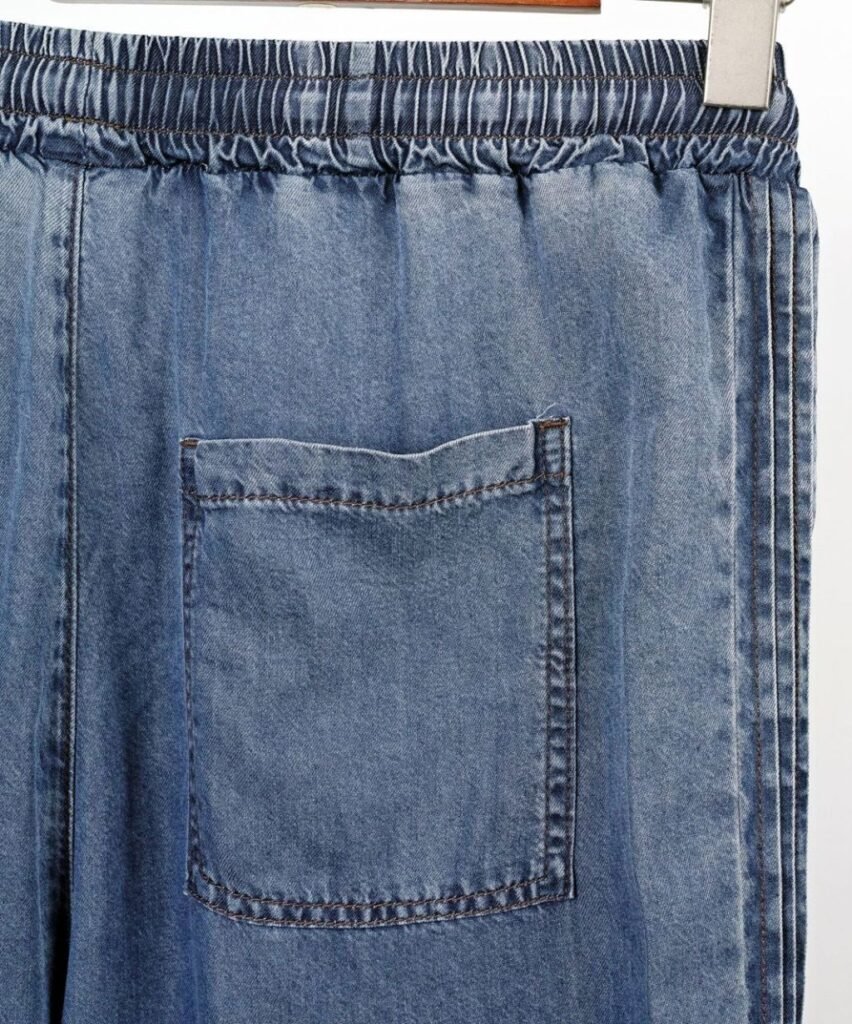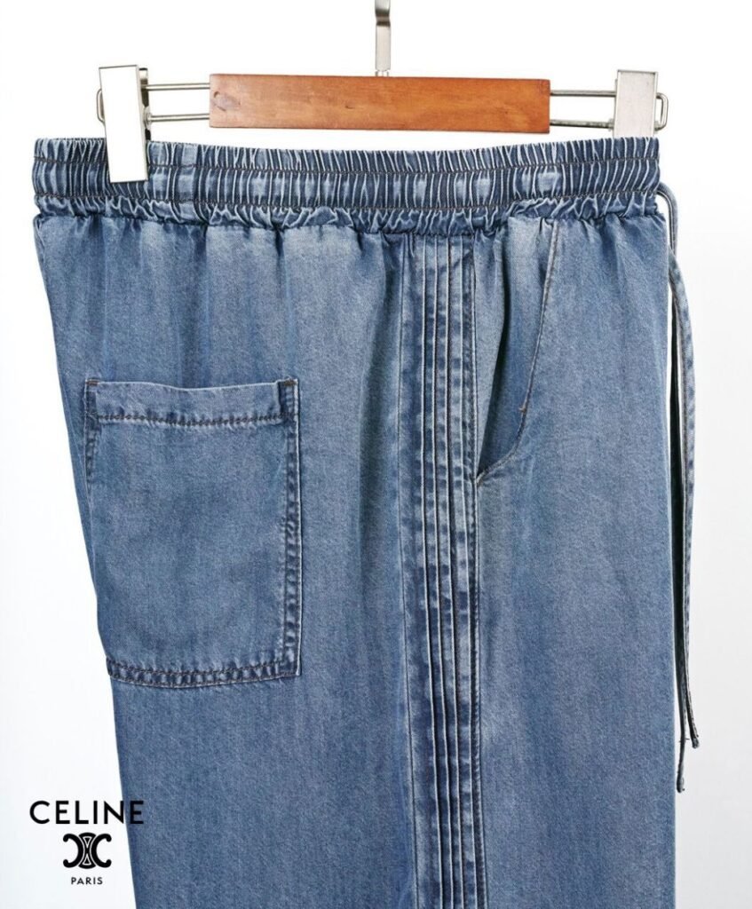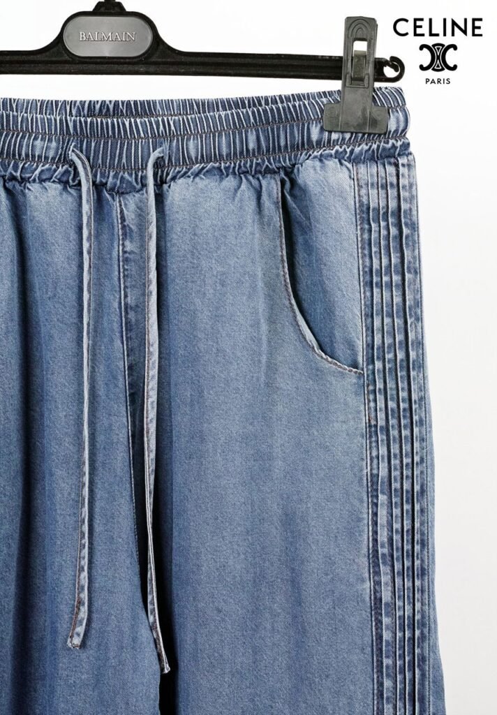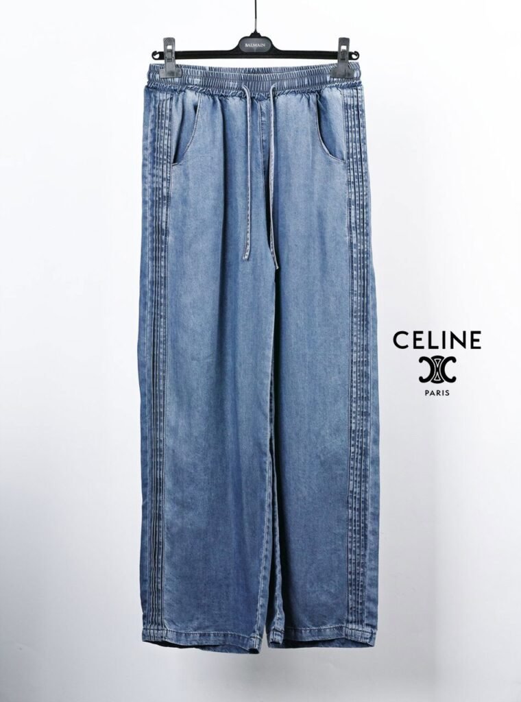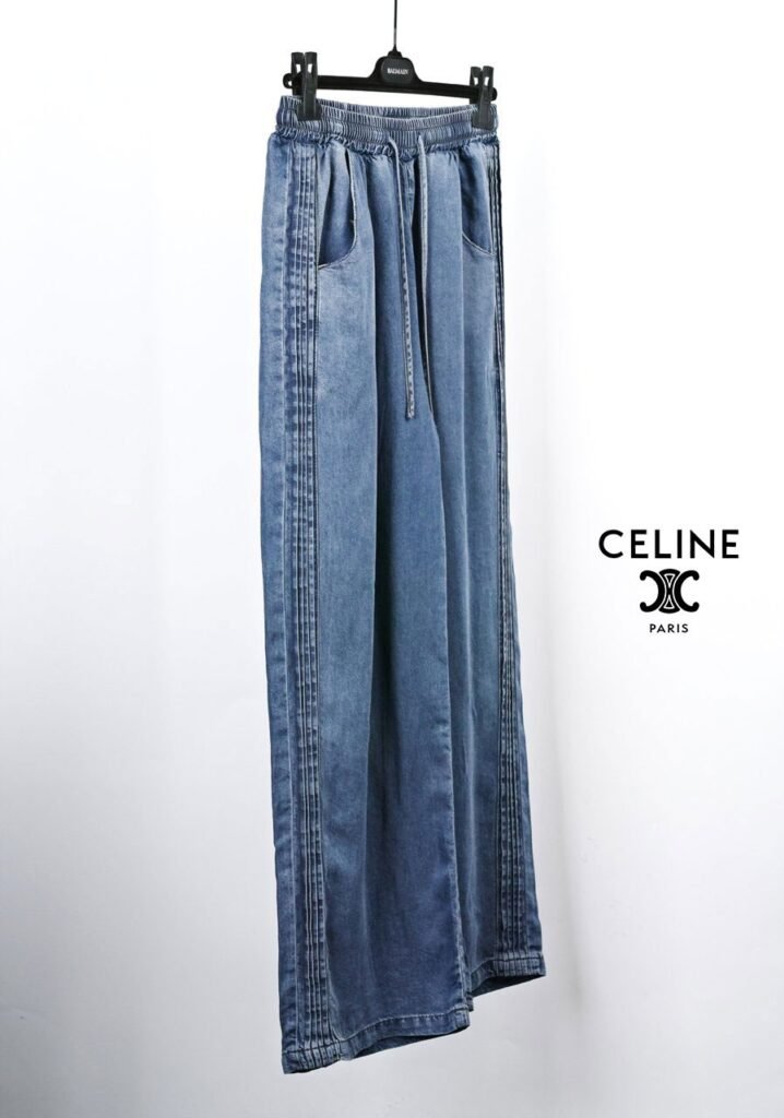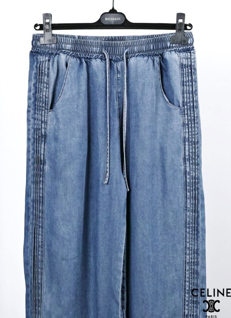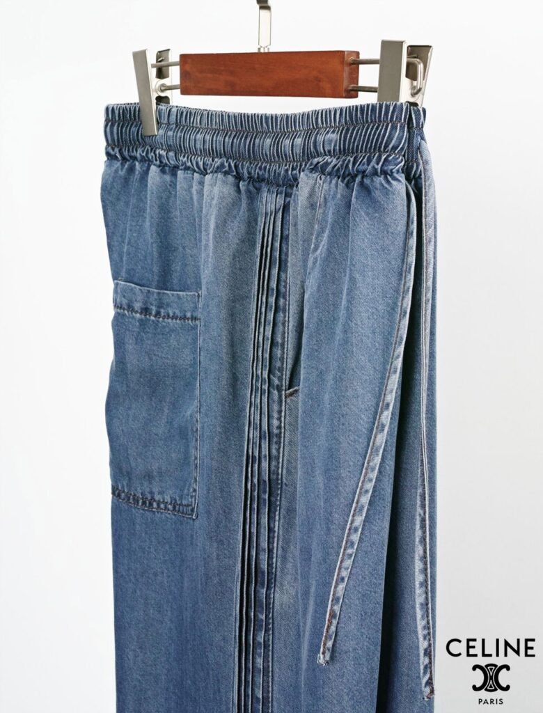 셀린느 핀턱 데님 와이드 청바지 사이즈: Free (~32)※허리 밴딩※와이드 핏※핀턱 + 텐셀허리 38~54 / 총장 103 /허벅지 38 / 밑위 36 / 밑단 31단가: 7.5