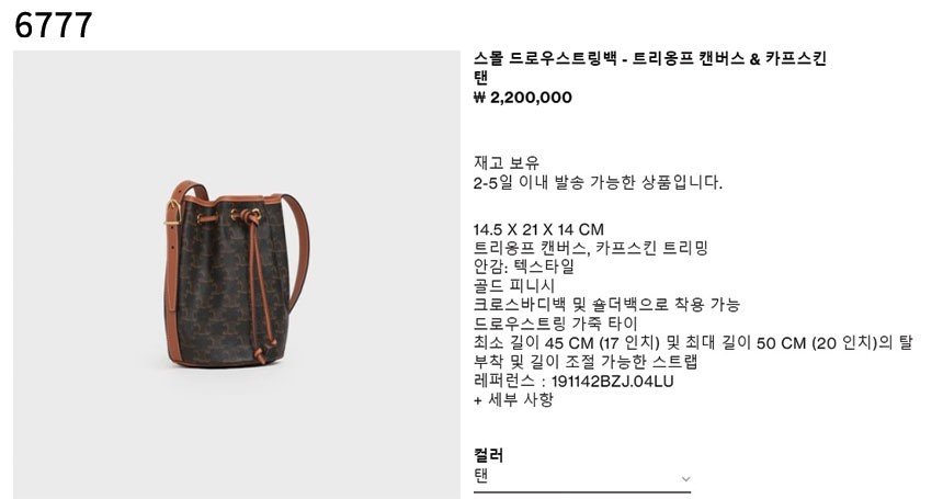#셀린느 [CELINE] 수입고급 스몰 드로우스트링백 신상입고💢 #가방 #6777 ㆍ✍구성품 ㅡ본품. 더스트ㆍ😍컬러 ㅡ 브라운ㆍ😎사이즈 ㅡ 14cm X 21cm X 14cm (미세오차허용)16.0