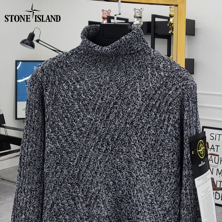 스톤아일랜드 사선 믹싱 폴라 니트