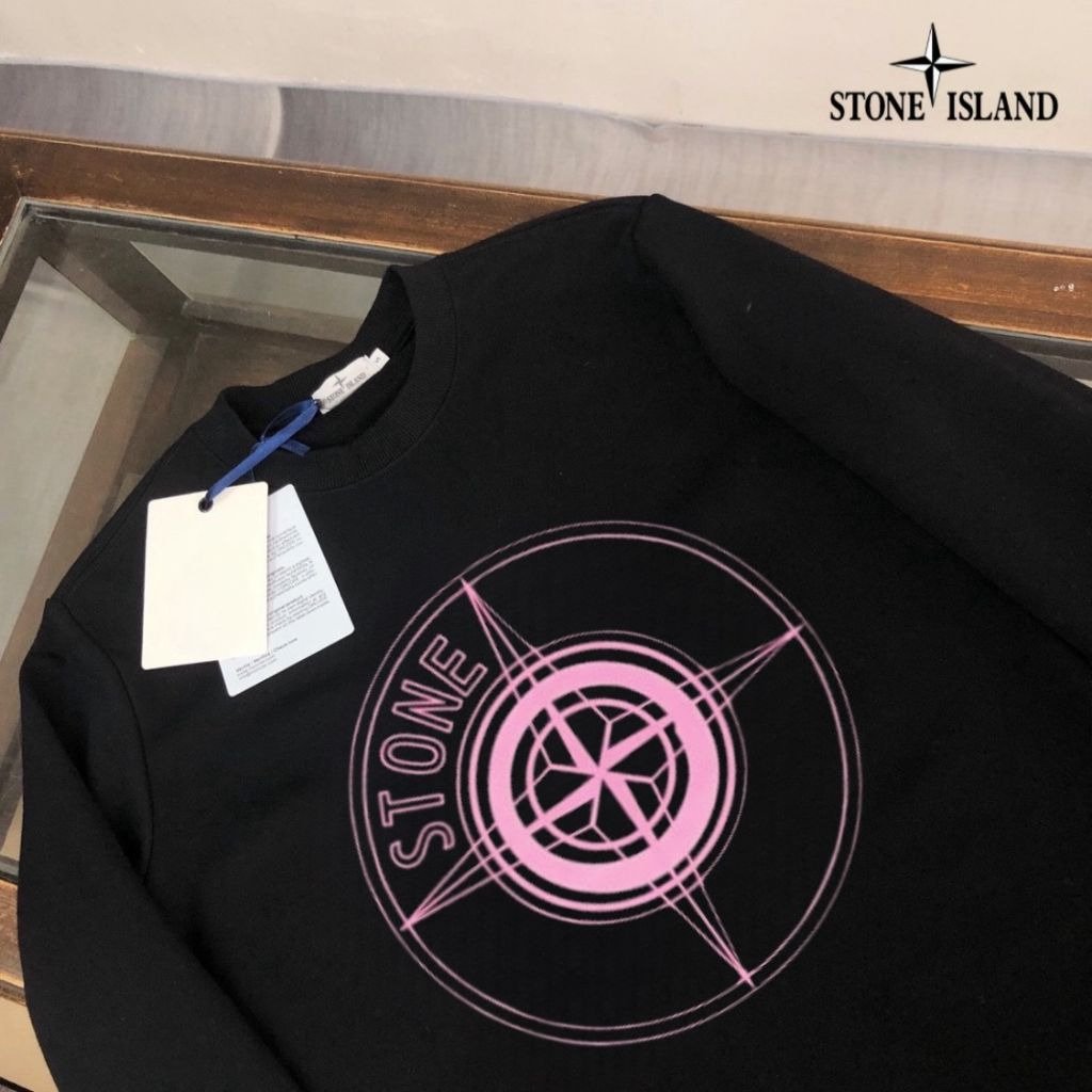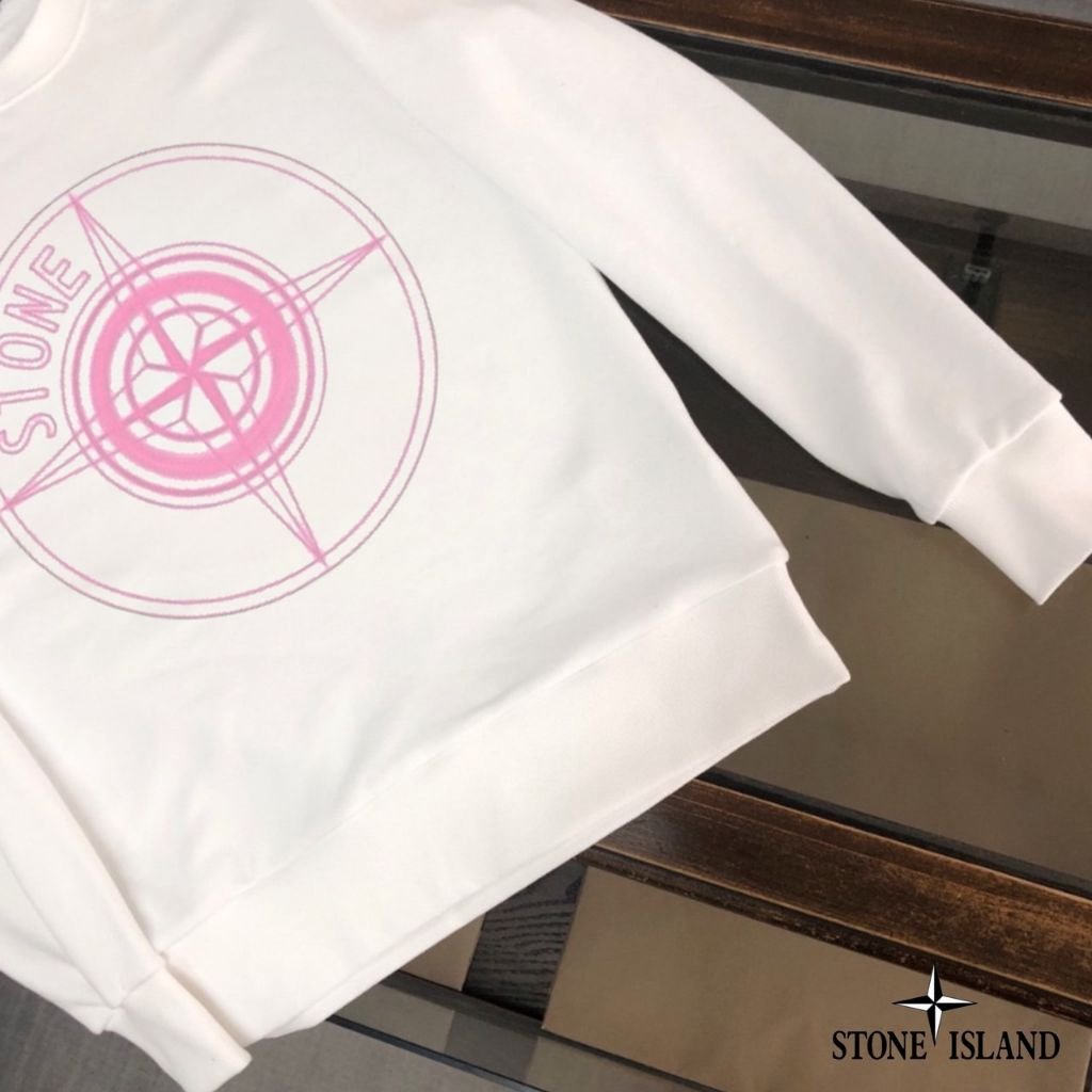스톤아일랜드 핑크 나침반 로고 라운드 맨투맨
