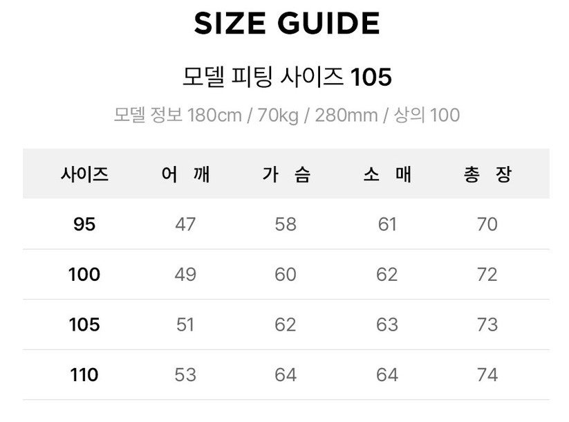 사이즈: 95, 100, 105, 110