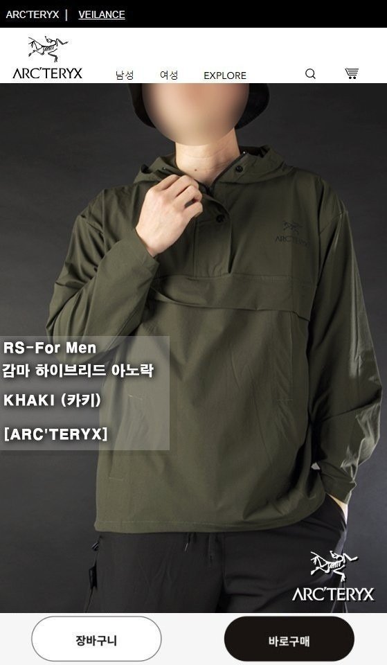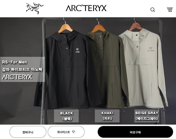 아크테릭스 감마 하이브리드 아노락 색상: 블랙, 카키, 베이지그레이사이즈: XL(95), 2XL(100),3XL(105), 4XL(110)※폴리에스터※모델 착용: 183cm / 79kgㅡ 3XL8.5