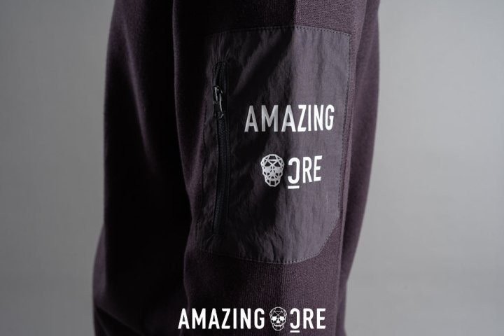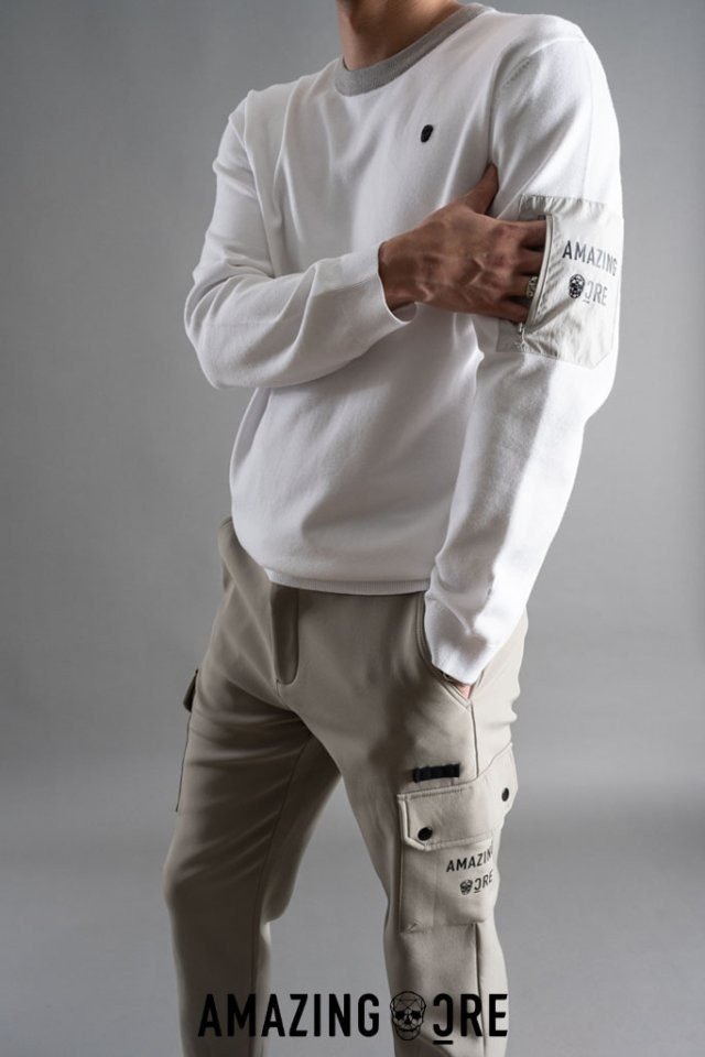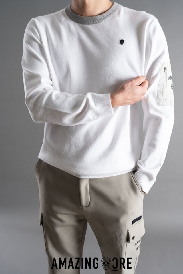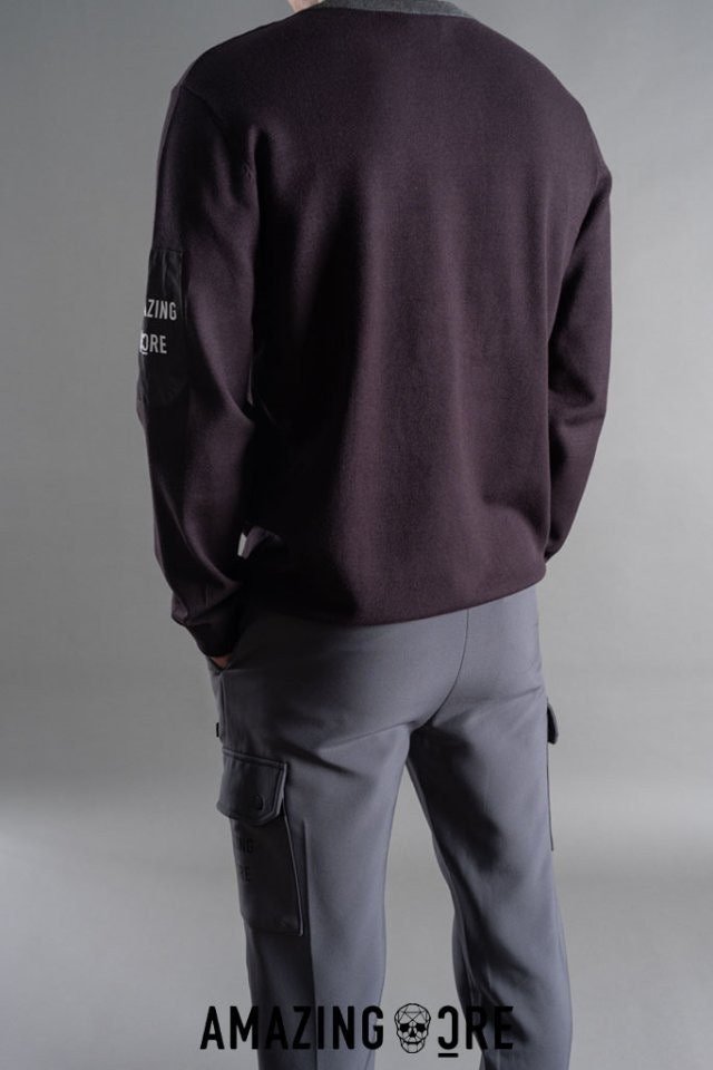 니트만의 포근한 느낌과 바람막이 소재의 팔부분 포켓이 주는