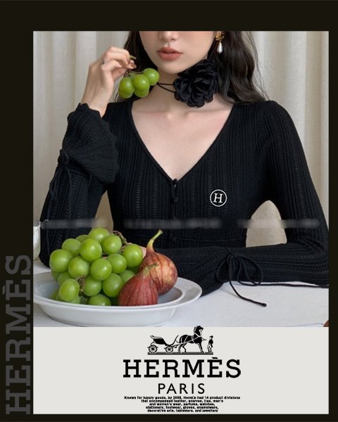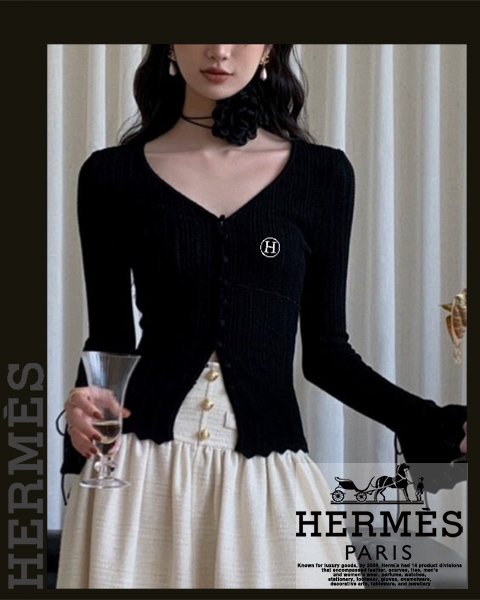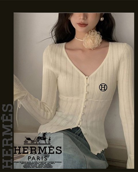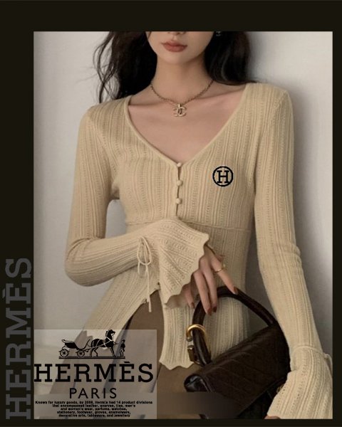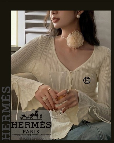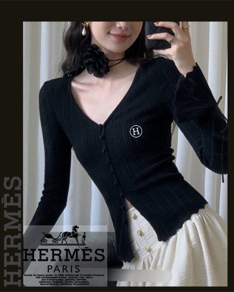 에르메스 여성 H7163 H 자수 나팔 소매 니트 가디건