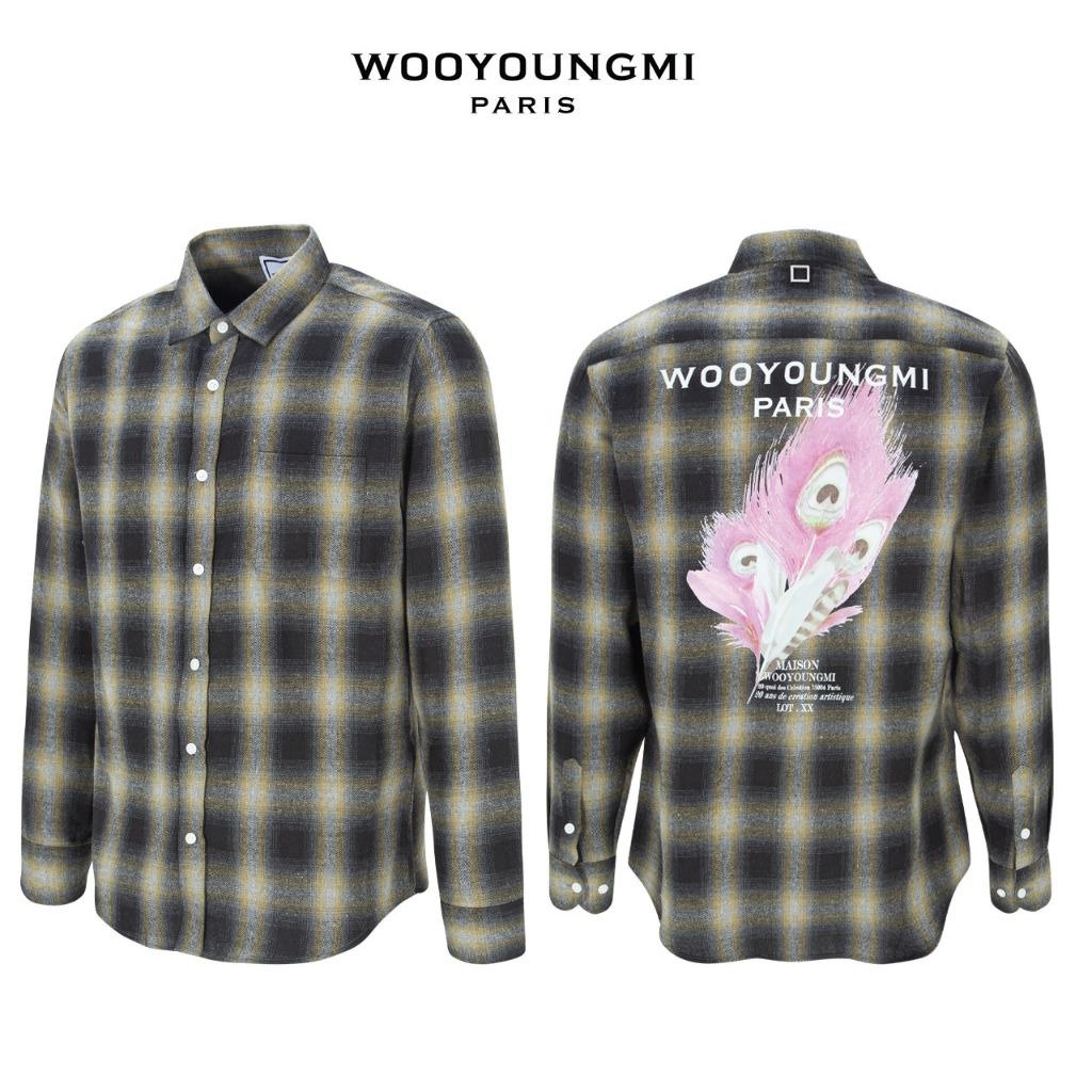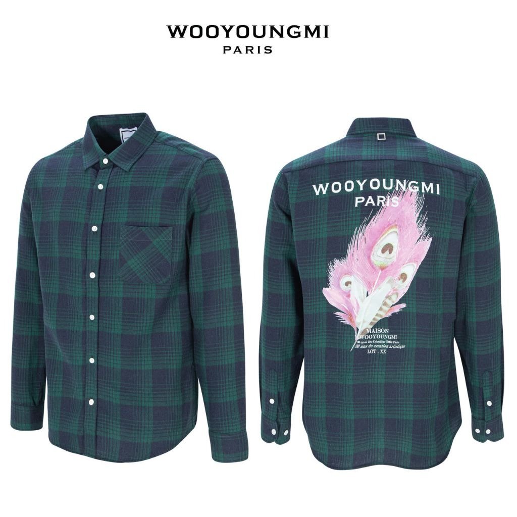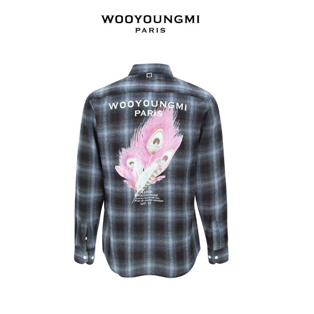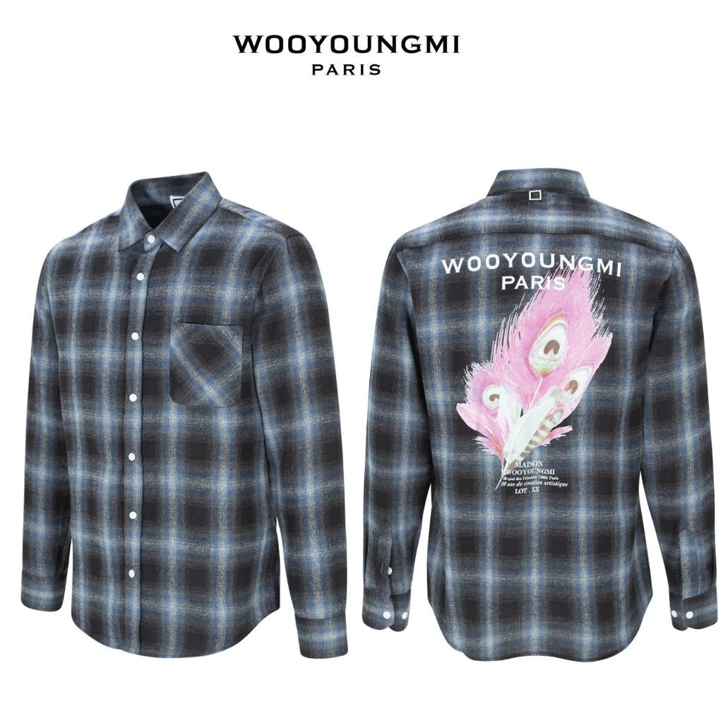 우영미 체크 플라넬 깃털 나염 셔츠