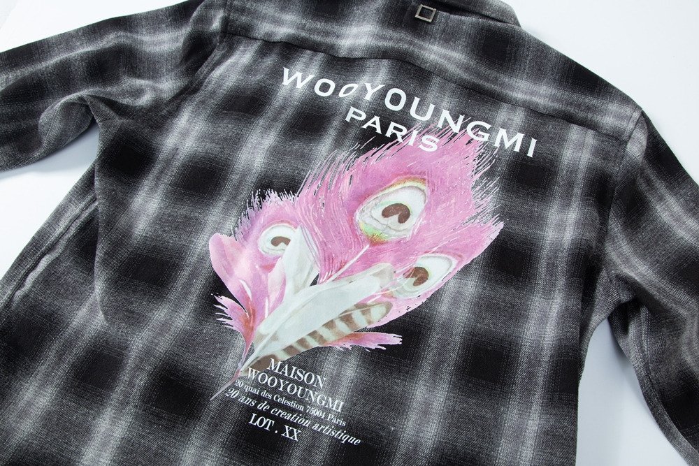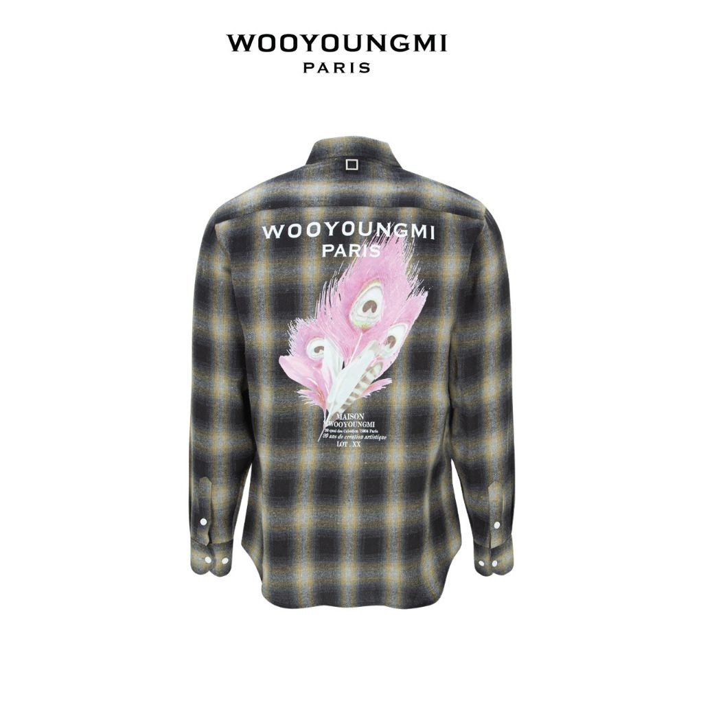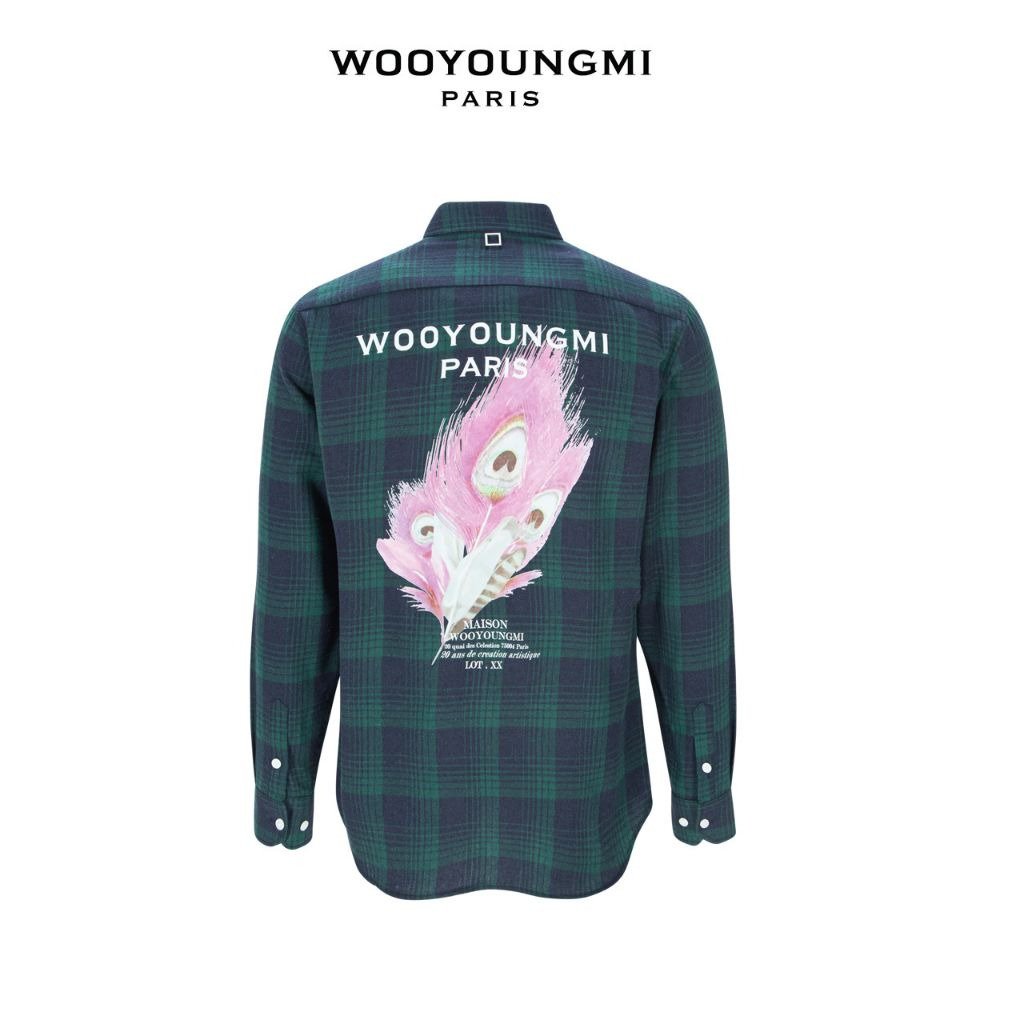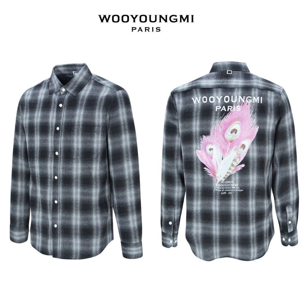 우영미 체크 플라넬 깃털 나염 셔츠
