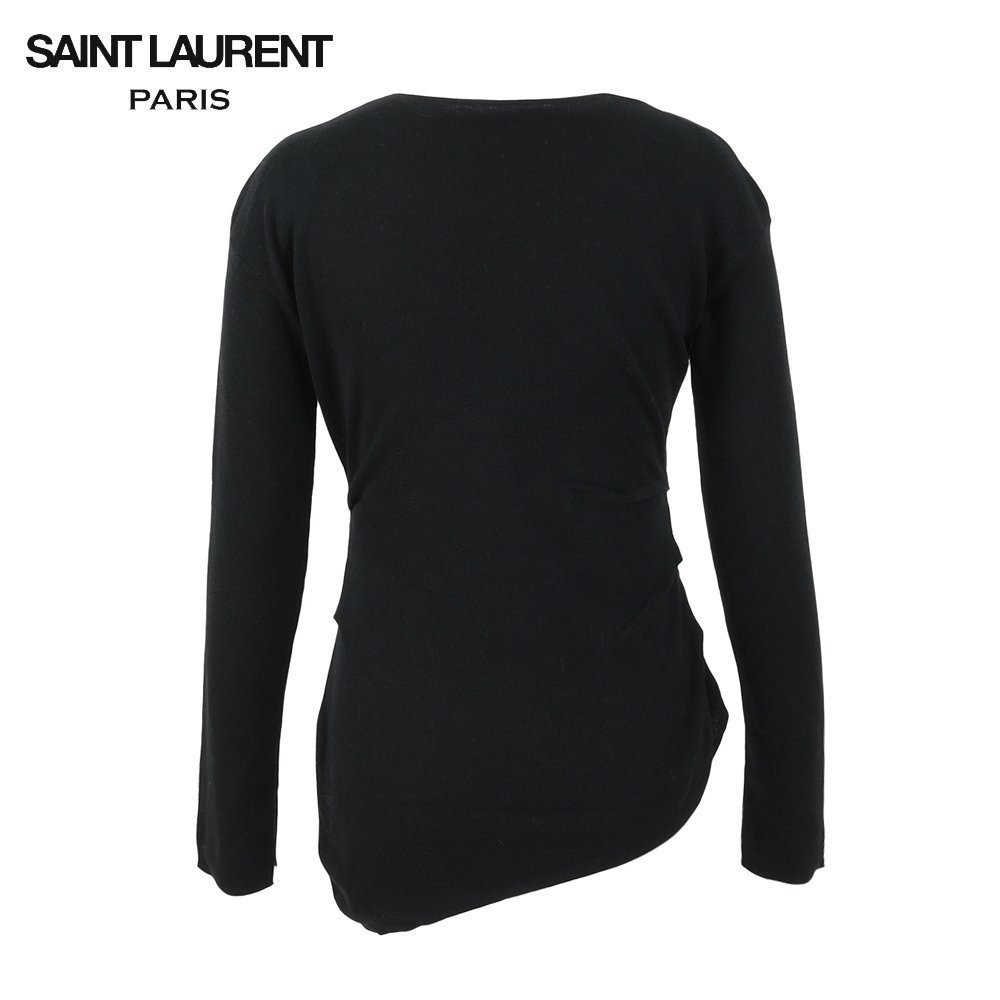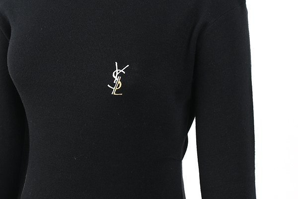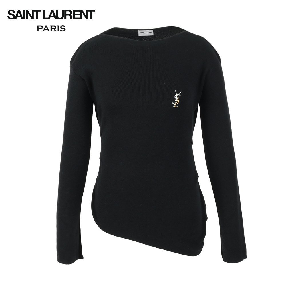 입생로랑 여성 자수 로고 언발 절개 울 니트