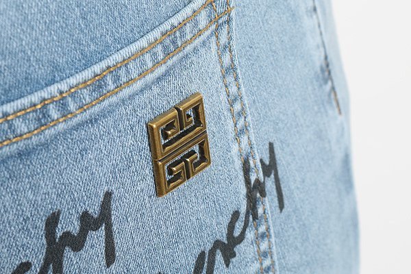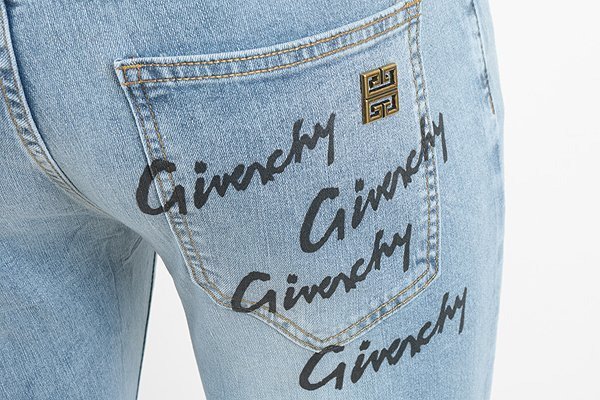 지방시 이니셜 레터링 스틸 워싱 슬림진 청바지