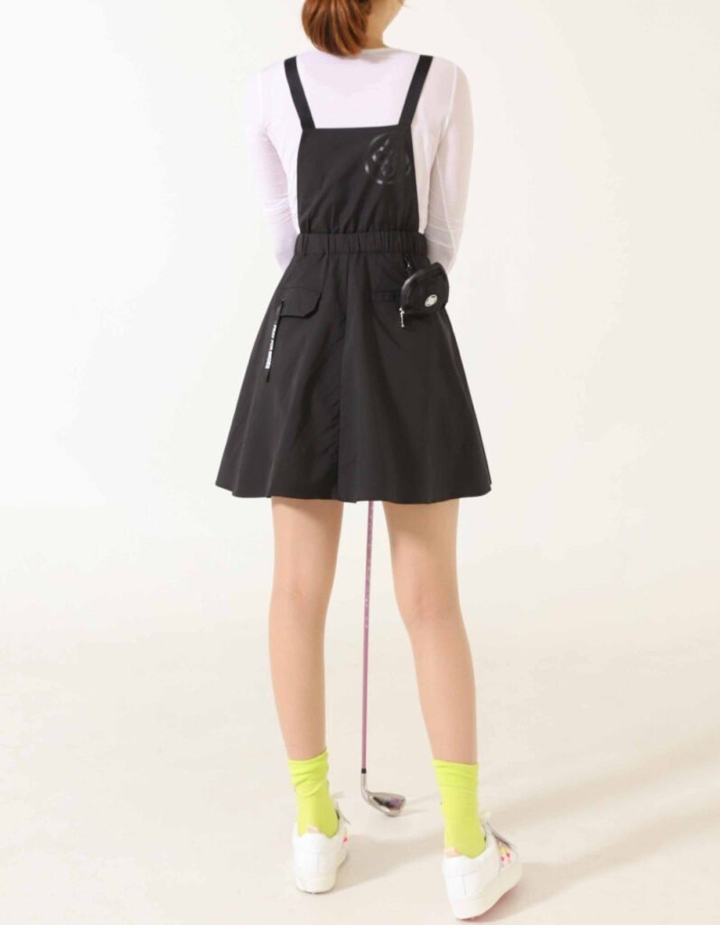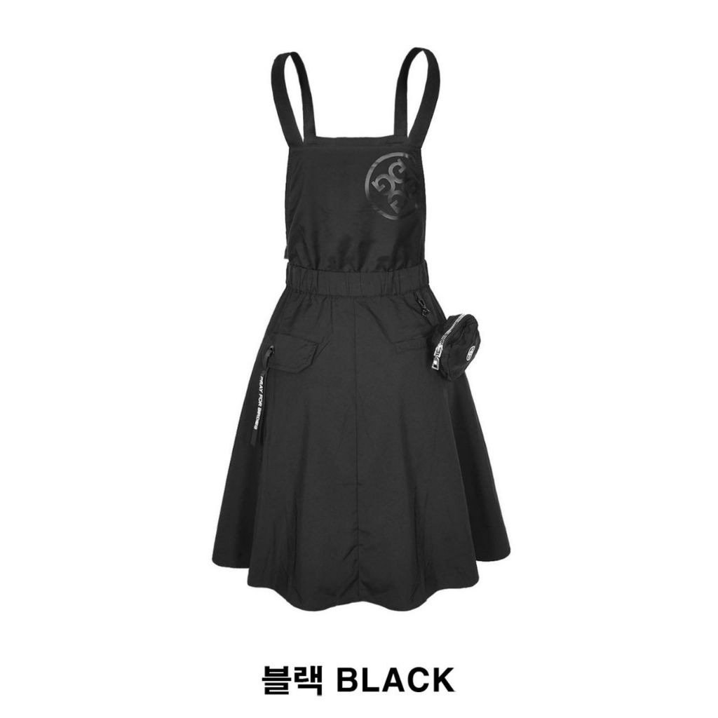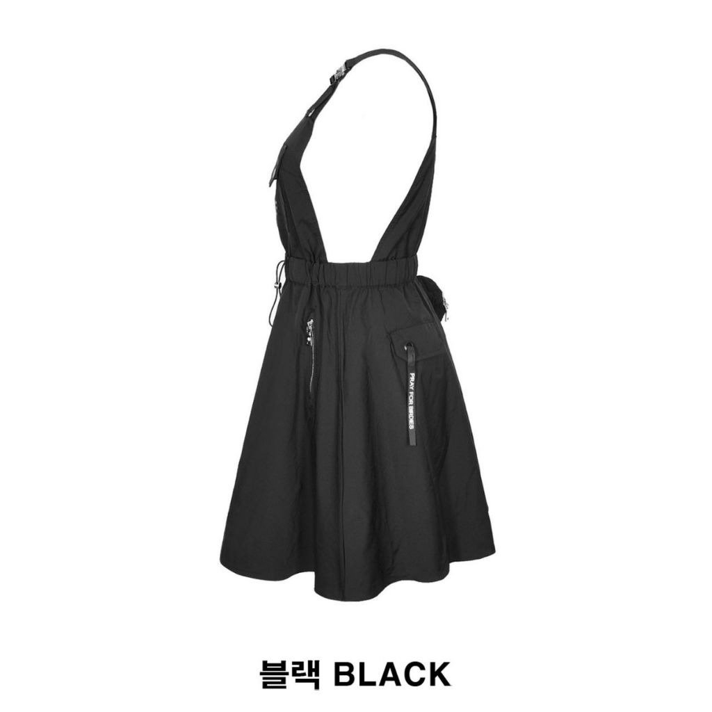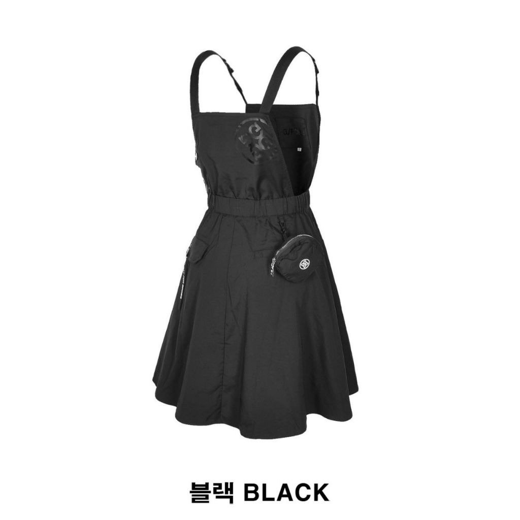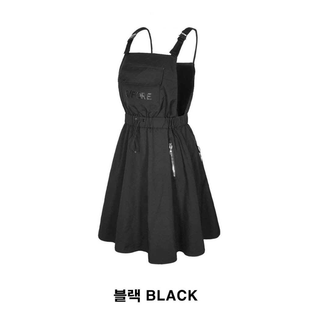 지포어 우븐 플레어 멜빵 원피스