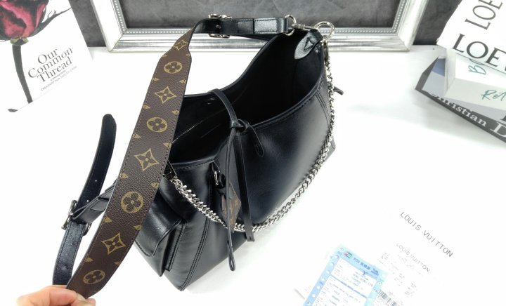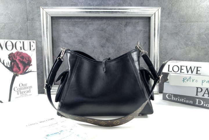다크한 매력과 여유로운 실루엣이 조화를 이루는 캐리올 카고 바이브 PM 핸드백. 살짝 주름진 감각적인 요소가 특징인 매우 부드러운 램스킨 소재. 폴리싱 처리하고 팔라듐 색상의 마감을 더한 하드웨어. 탈착형 스트랩 및 세련된 탈착형 체인을 활용하여 데일리 룩과 이브닝 룩에 모두 스타일링하기 좋은 아이템.
