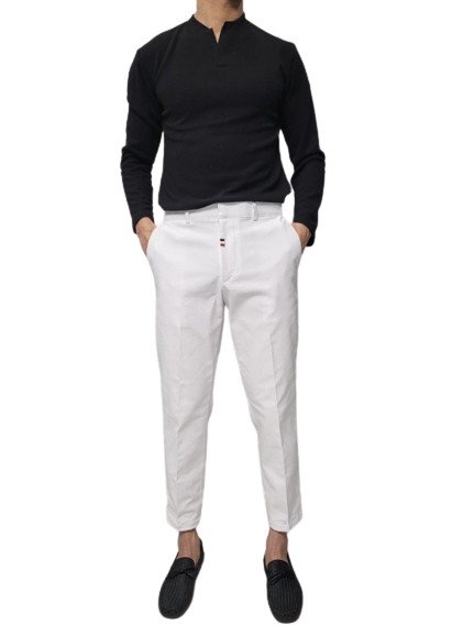 톰브라운 반밴딩 9부 치노 면 슬랙스 (바지) 색상: 베이지, 블랙, 화이트, 아이보리사이즈: S(28), M(30), L(32), XL(34)※삼색 포인트※모델 착용: 187cm / 78kgㅡ L단가: 7.8