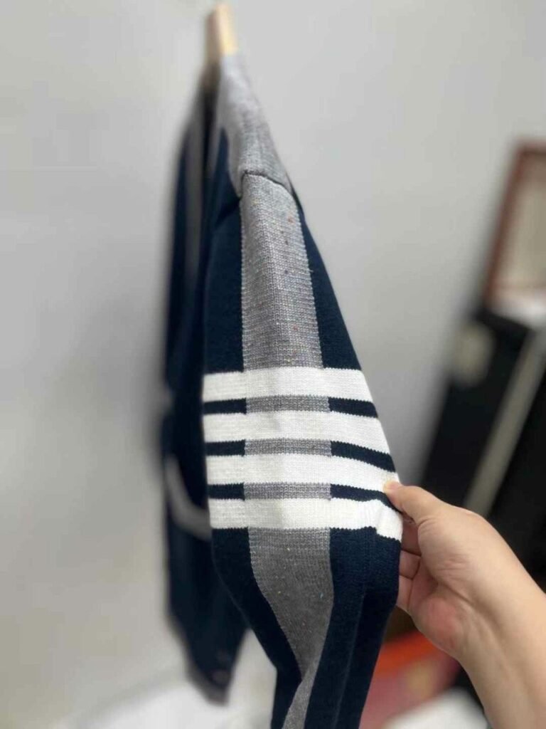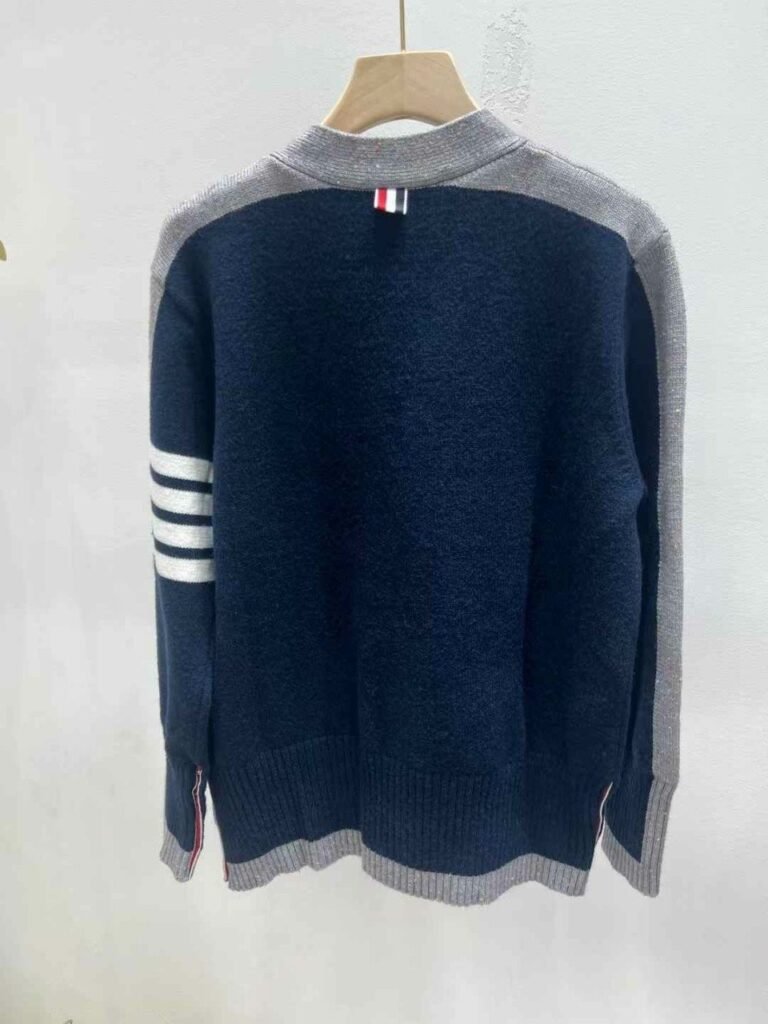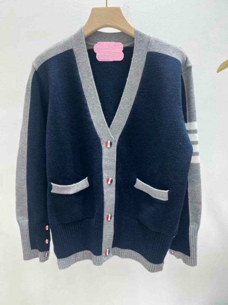 톰브라운 여성 네이비 앤 그레이 라인 니트 가디건