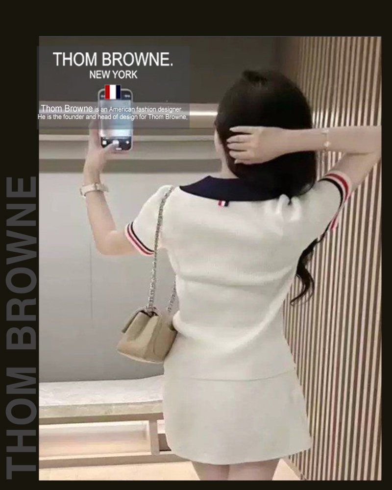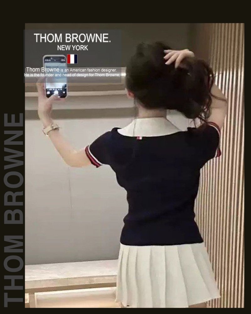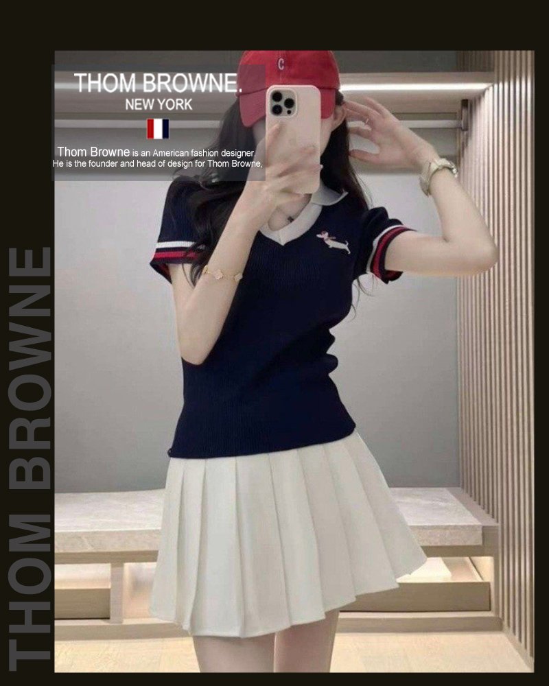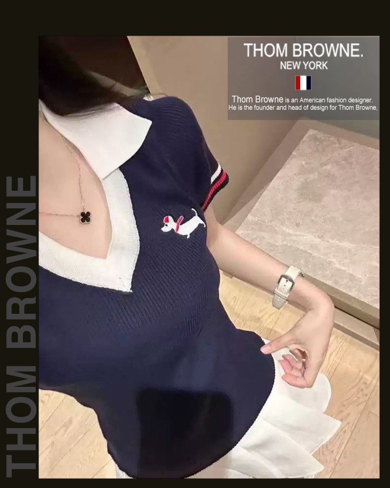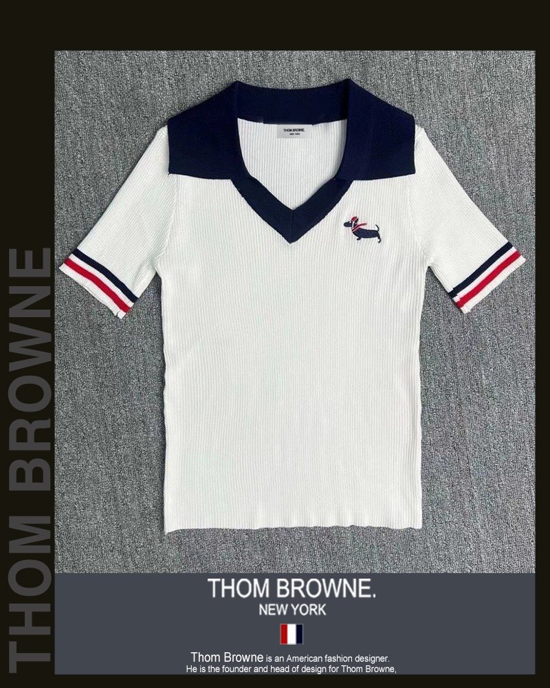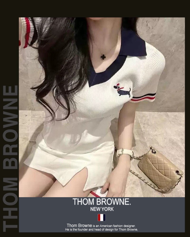 톰브라운 여성 5036 브이 카라 배색 헥터 반팔 니트